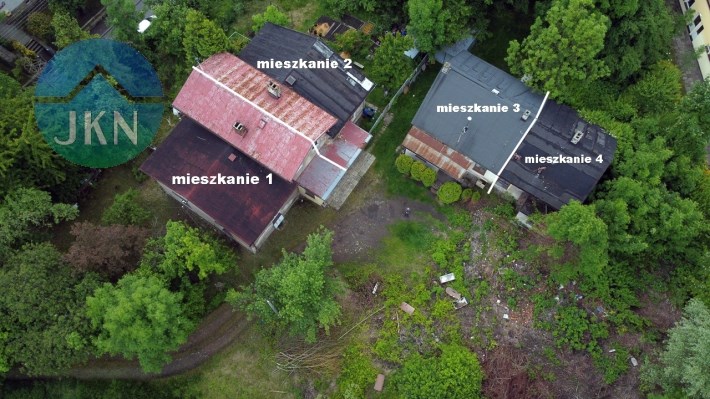 Na rozległej działce o powierzchni 1885 m² znajdują się dwa budynki z czterema wydzielonymi mieszkaniami, które czekają na nowe życie. Obiekty są w pełni uzbrojone w media, ale wymagają kompleksowego remontu, co daje ogromne możliwości dostosowania ich do własnych potrzeb lub stworzenia atrakcyjnej inwestycji.