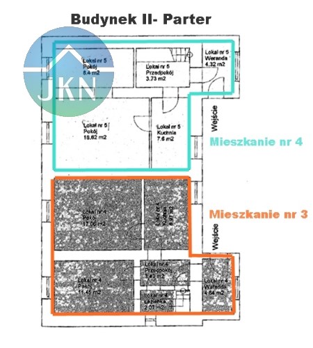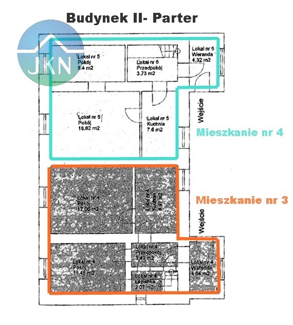 - Osobne wejście, 2 pokoje, kuchnia, łazienka, przedpokój, weranda