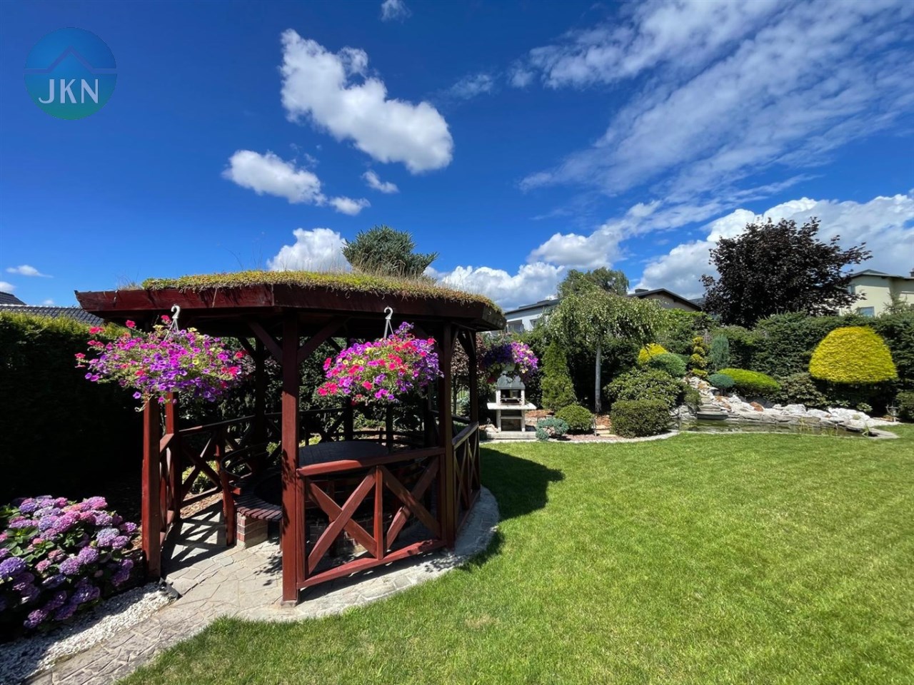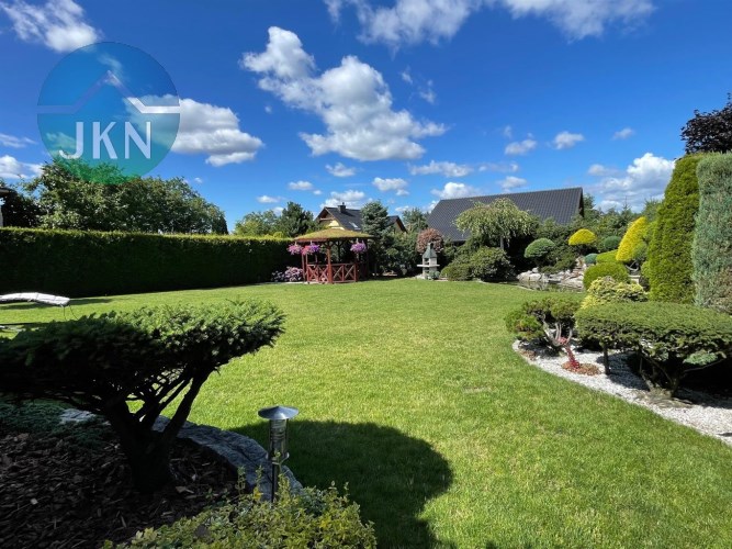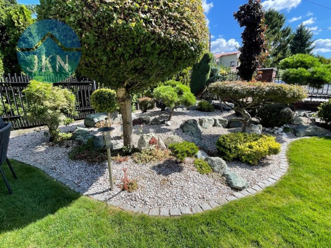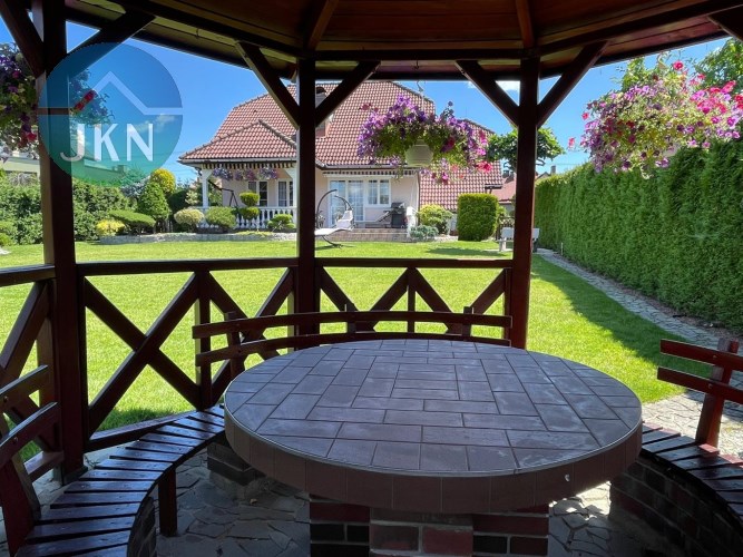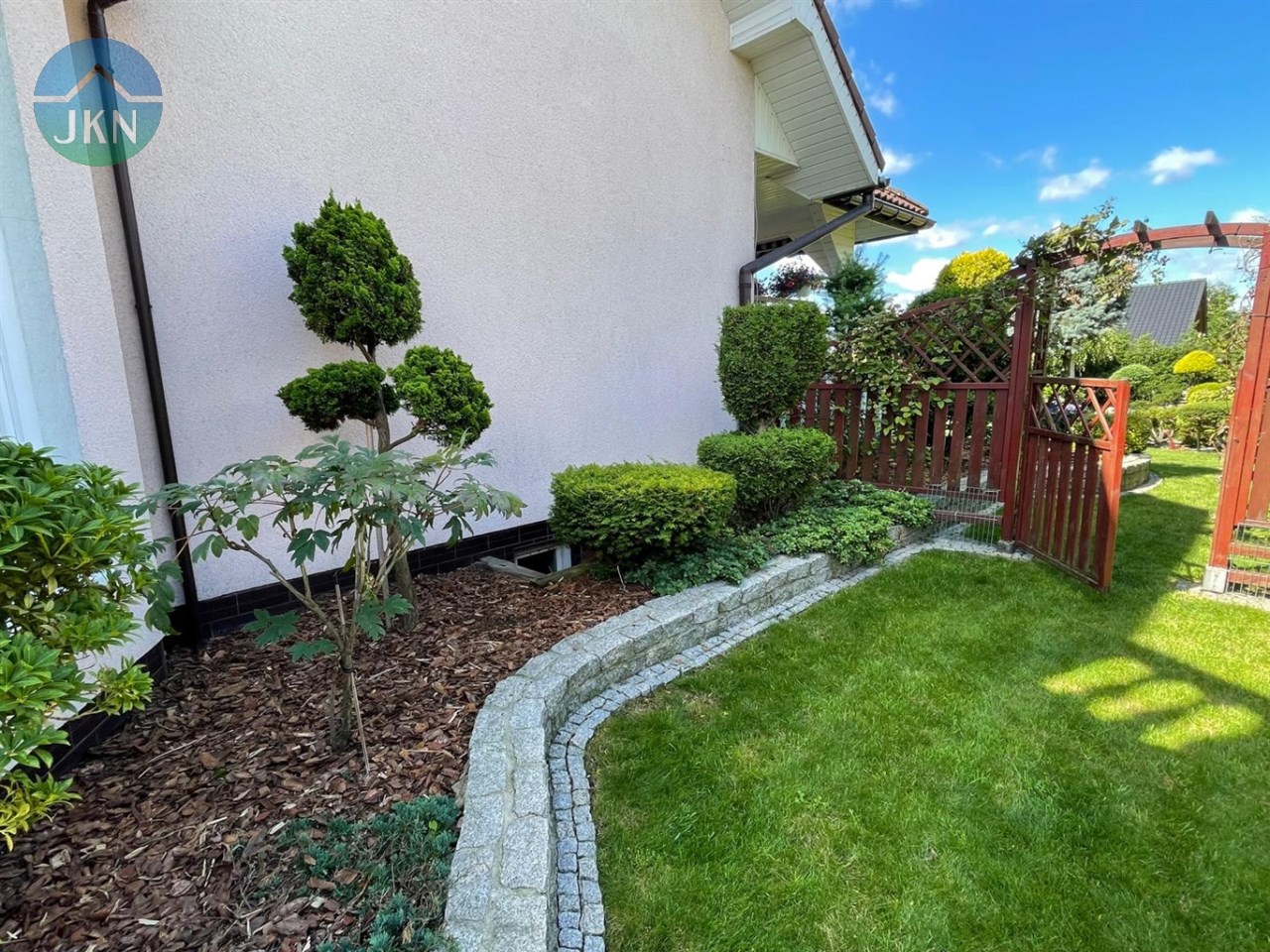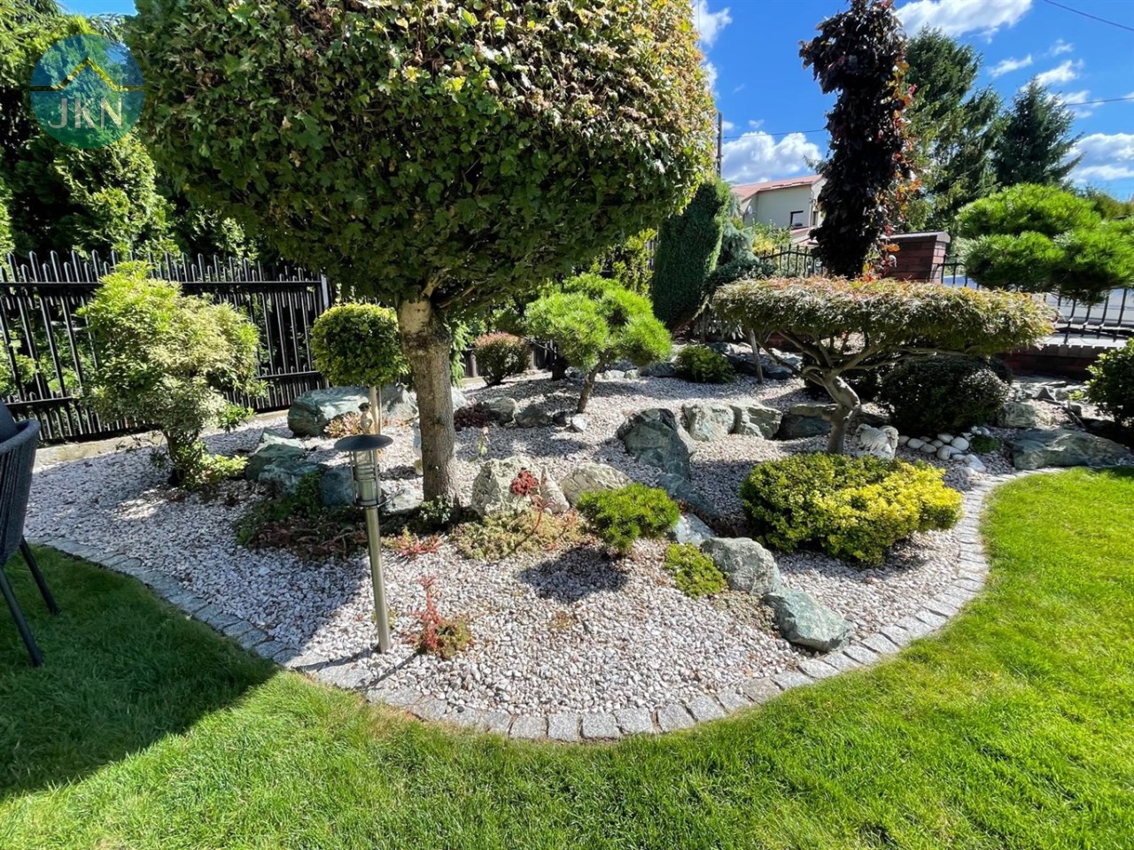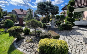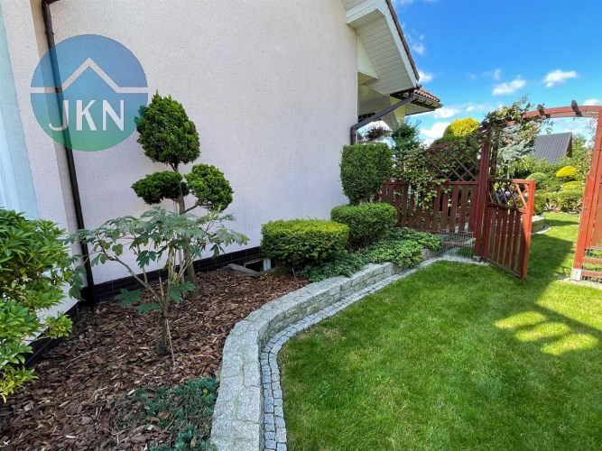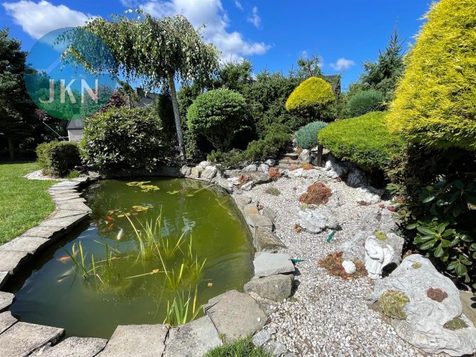 Ogród pięknie urządzony, duża ilość krzewów i drzewek ozdobnych starannie uformowanych i regularnie pielęgnowanych. Do dyspozycji macie oczko wodne z kaskadą, altanę z grillem, duży słoneczny taras, częściowo zadaszony, na którym możecie przesiadywać nawet w deszczowa pogodę, a w słoneczne dni możecie rozsuwać markizę. To miejsce stworzone z myślą o relaksie, które pozwala cieszyć się urokami natury bez wychodzenia z ogrodu.