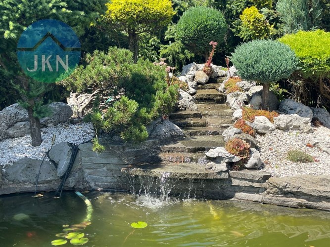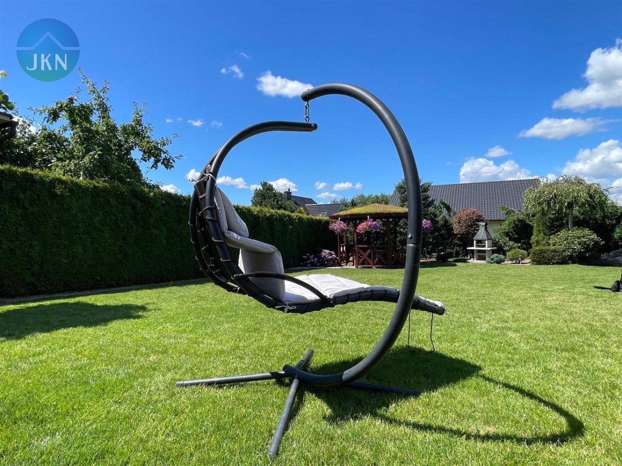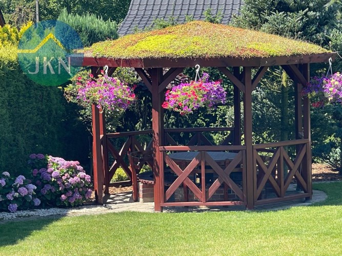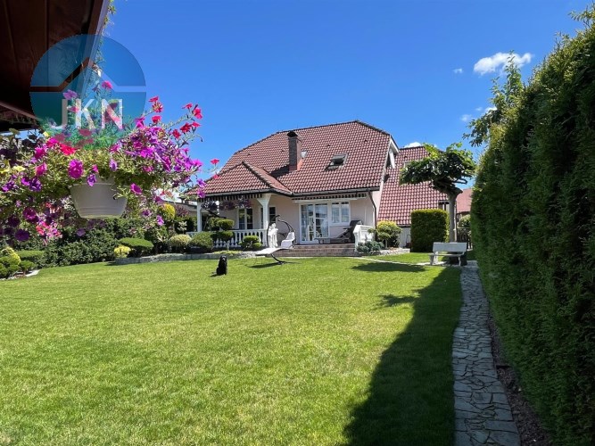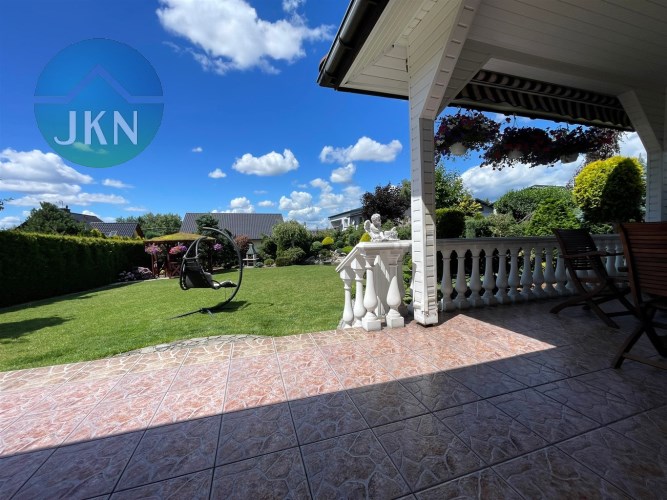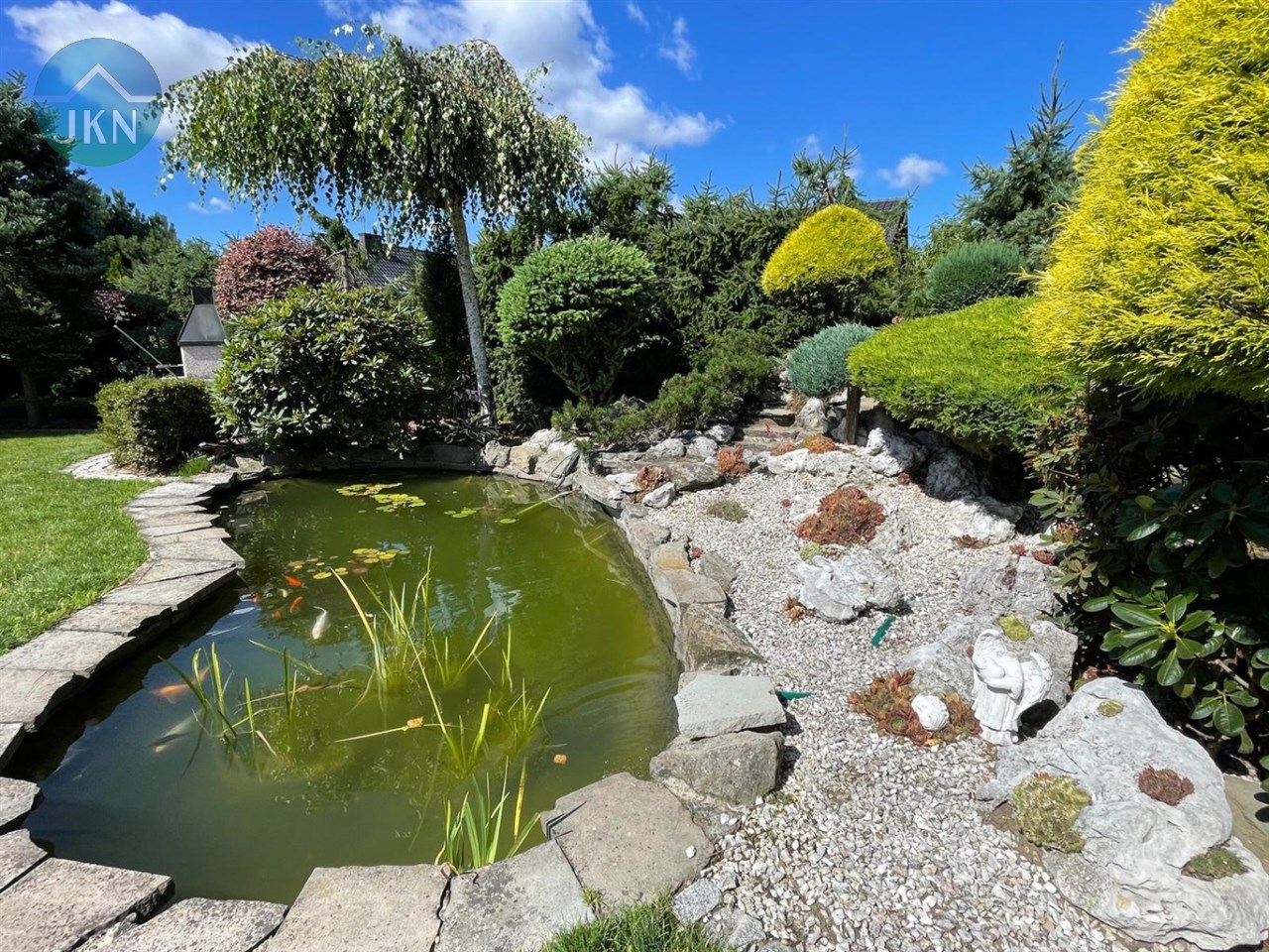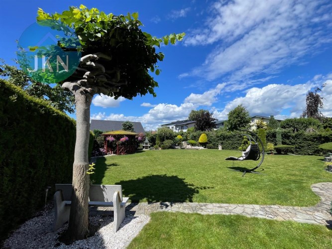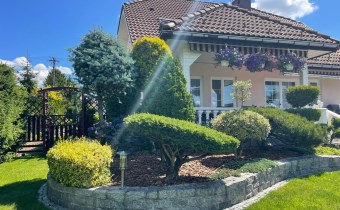 Ogród pięknie urządzony, duża ilość krzewów i drzewek ozdobnych starannie uformowanych i regularnie pielęgnowanych. Do dyspozycji macie oczko wodne z kaskadą, altanę z grillem, duży słoneczny taras, częściowo zadaszony, na którym możecie przesiadywać nawet w deszczowa pogodę, a w słoneczne dni możecie rozsuwać markizę. To miejsce stworzone z myślą o relaksie, które pozwala cieszyć się urokami natury bez wychodzenia z ogrodu.