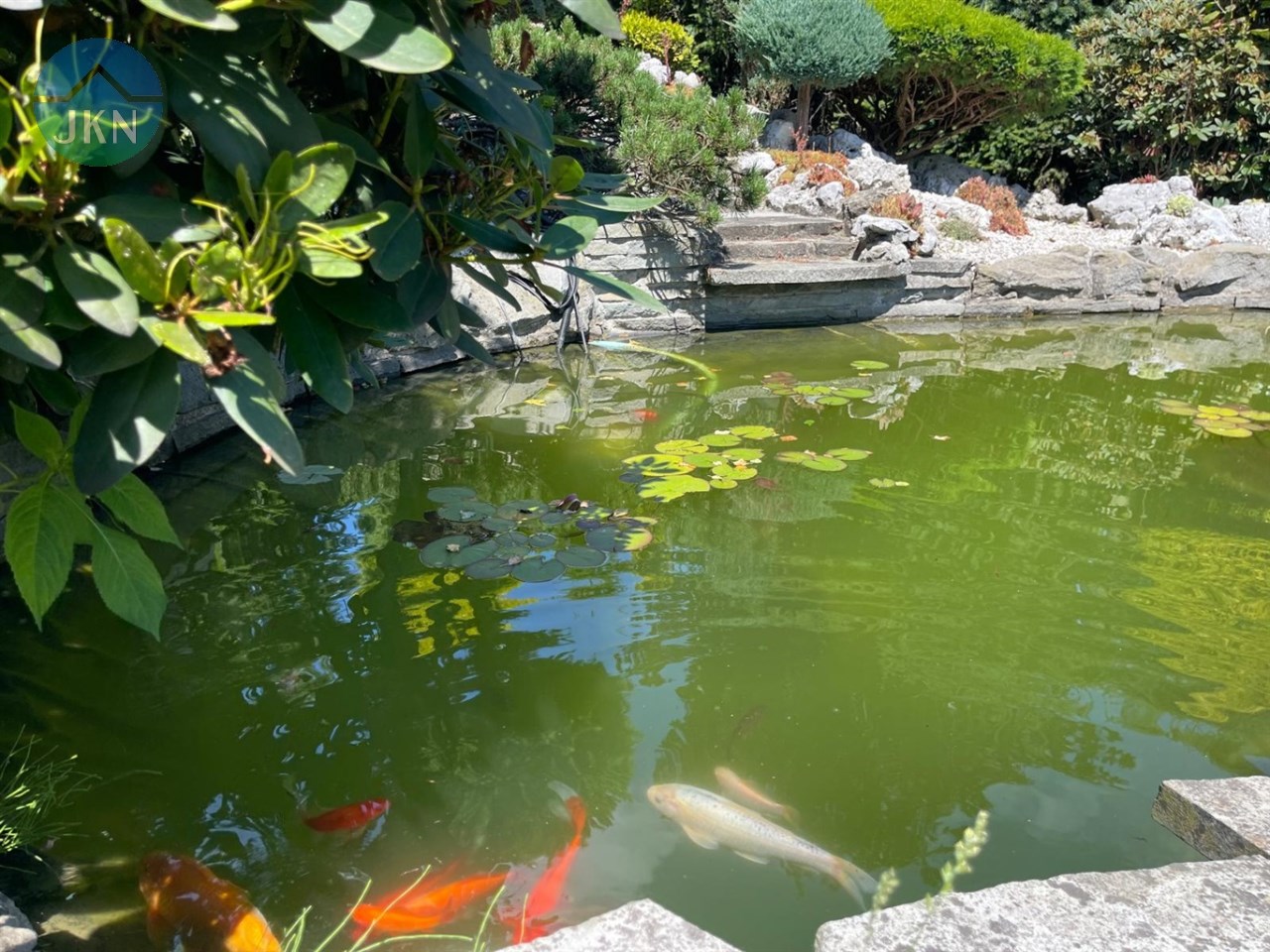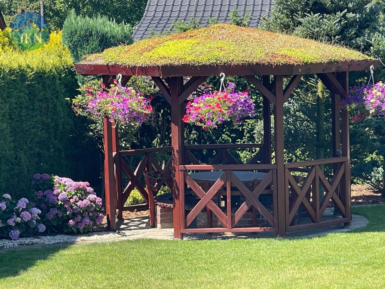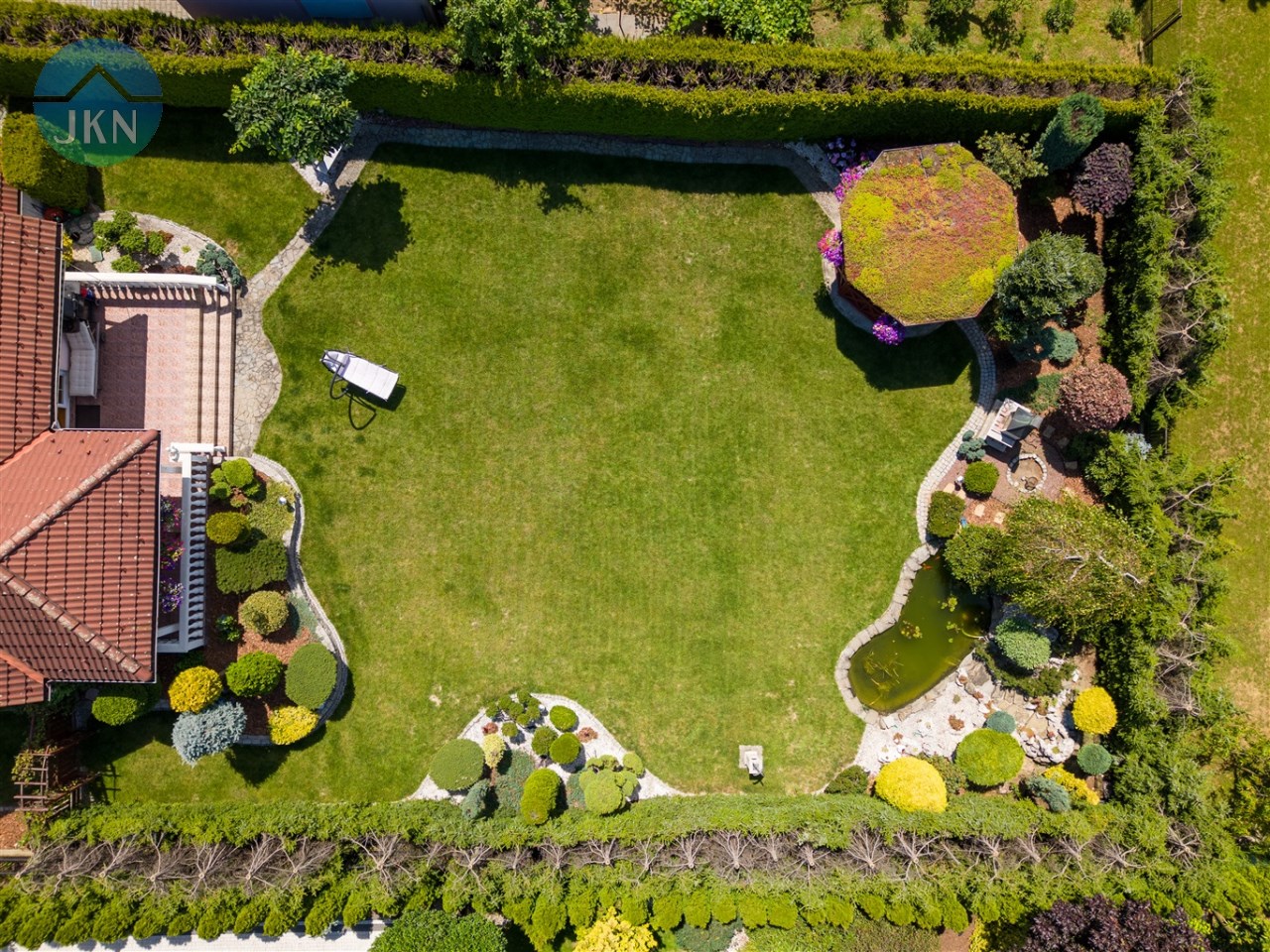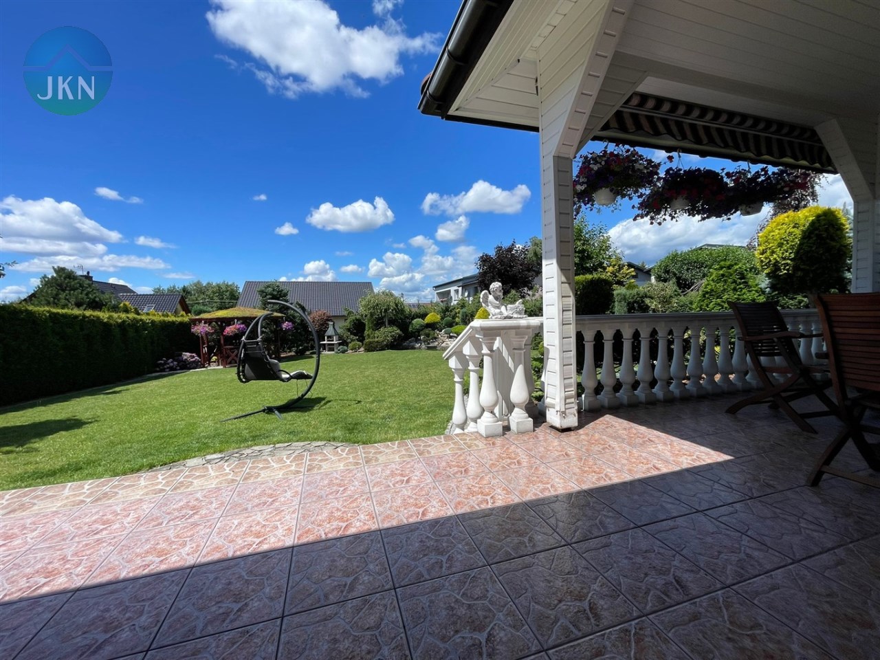 Ogród pięknie urządzony, duża ilość krzewów i drzewek ozdobnych starannie uformowanych i regularnie pielęgnowanych. Do dyspozycji macie oczko wodne z kaskadą, altanę z grillem, duży słoneczny taras, częściowo zadaszony, na którym możecie przesiadywać nawet w deszczowa pogodę, a w słoneczne dni możecie rozsuwać markizę. To miejsce stworzone z myślą o relaksie, które pozwala cieszyć się urokami natury bez wychodzenia z ogrodu.