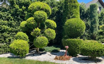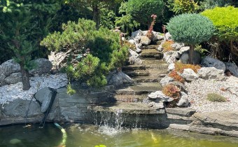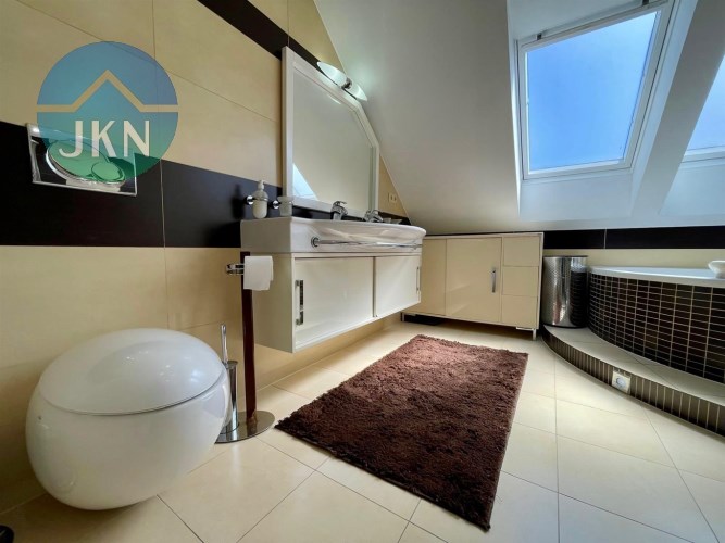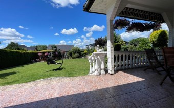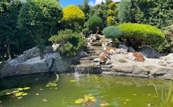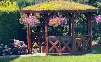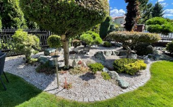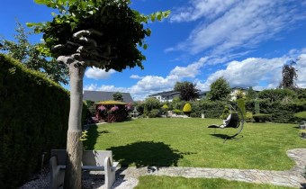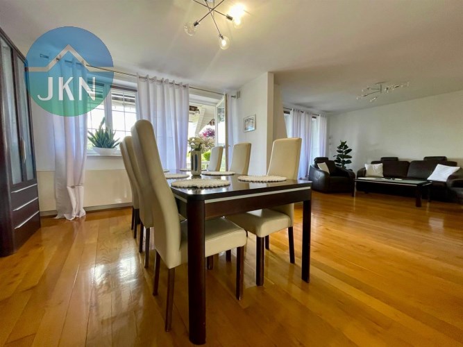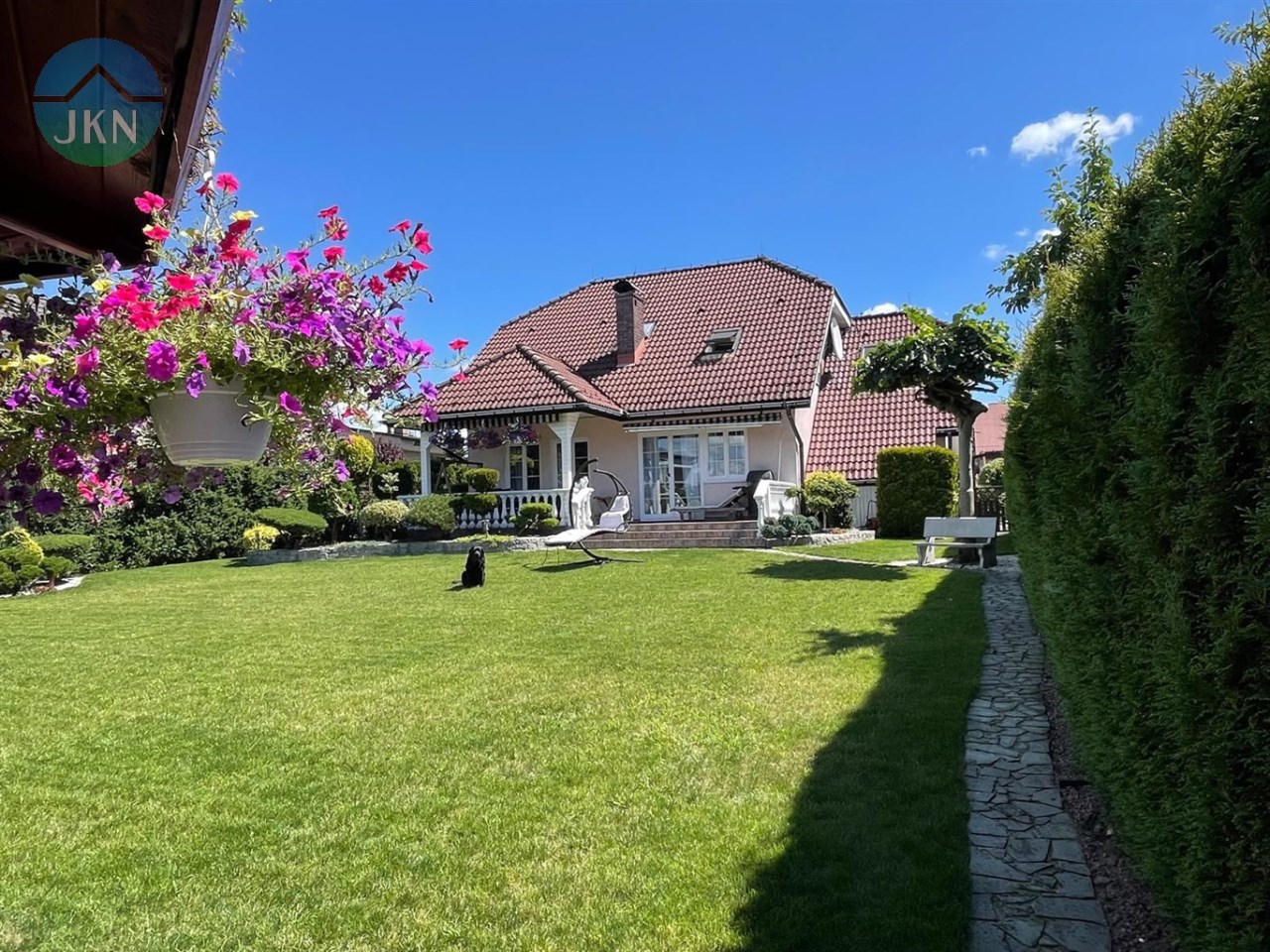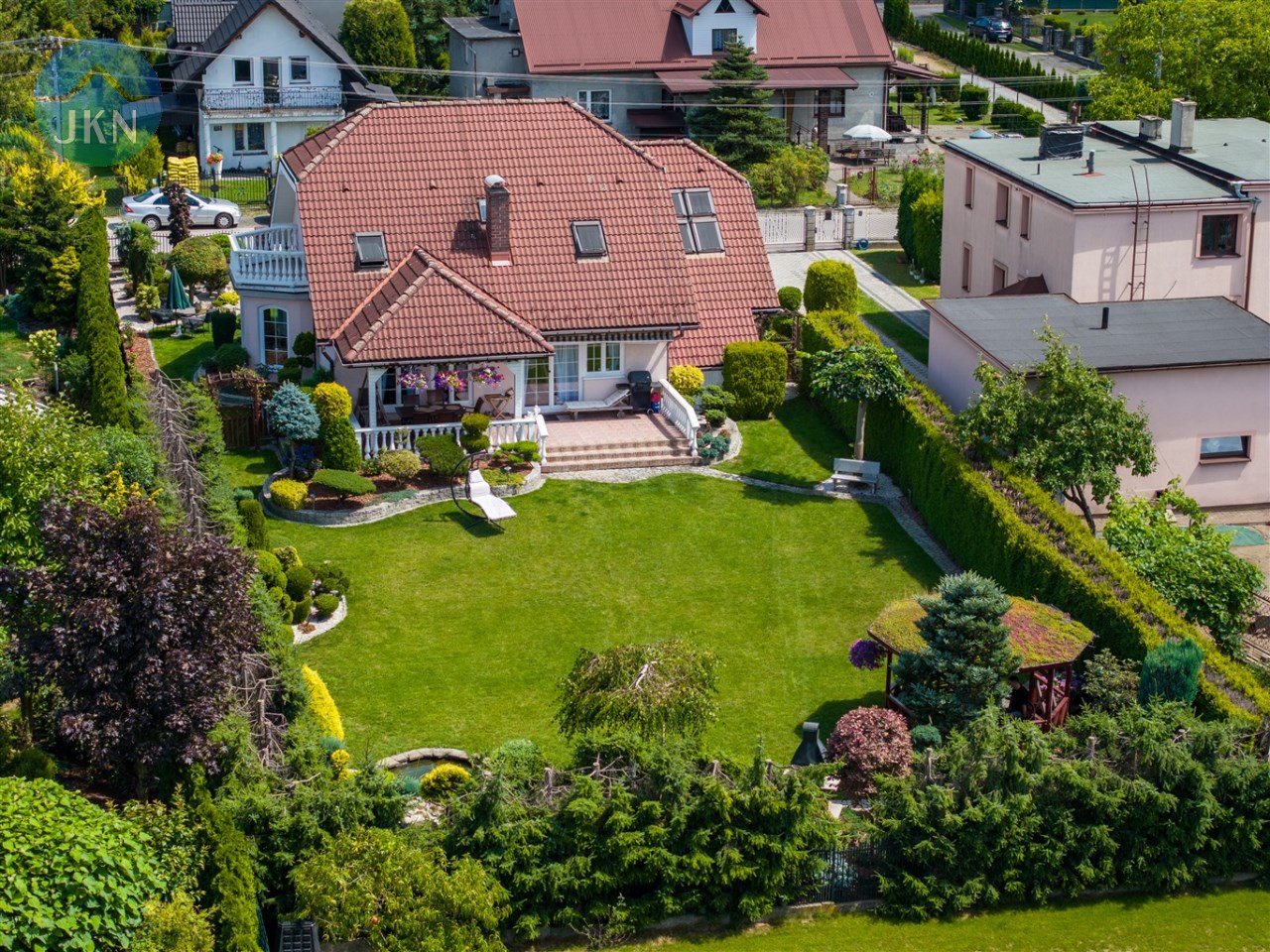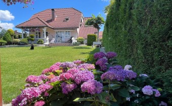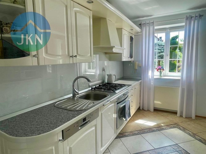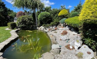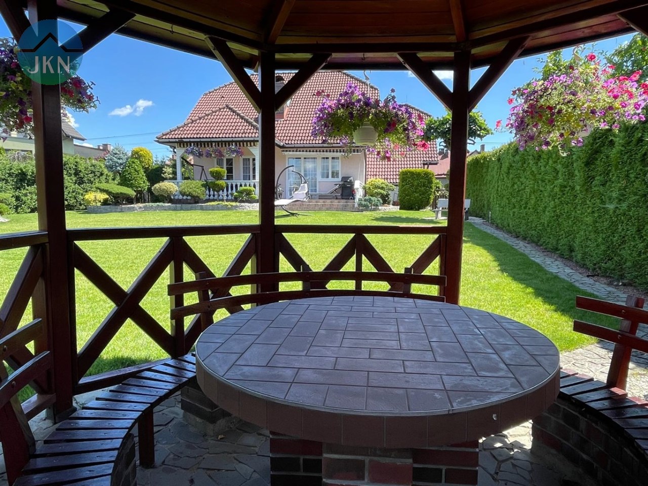 Ogród pięknie urządzony, duża ilość krzewów i drzewek ozdobnych starannie uformowanych i regularnie pielęgnowanych. Do dyspozycji macie oczko wodne z kaskadą, altanę z grillem, duży słoneczny taras, częściowo zadaszony, na którym możecie przesiadywać nawet w deszczowa pogodę, a w słoneczne dni możecie rozsuwać markizę. To miejsce stworzone z myślą o relaksie, które pozwala cieszyć się urokami natury bez wychodzenia z ogrodu.
