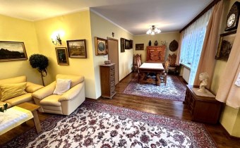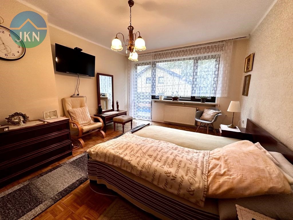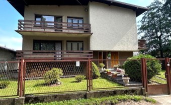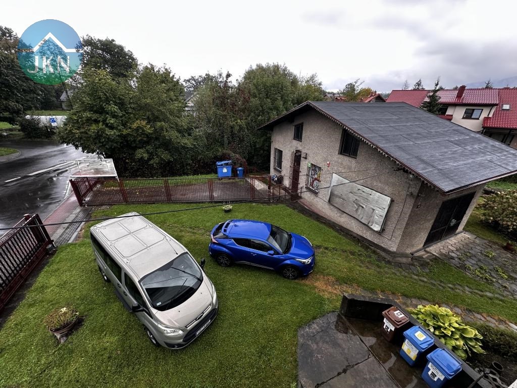 Działka kształtem zbliżona do trapezu, płaska. Wjazd odbywa się od strony zachodniej. W całości ogrodzona siatką ocynkowaną, z licznym nasadzeniem drzew oraz krzewów. W ogrodzie, za domem przebiega uregulowany strumyk. W przedniej (północno – zachodniej) części posesji znajduje się budynek o przeznaczeniu handlowo – usługowym o pow. użytkowej ok 67,71 mkw., pow. zabudowy ok. 120 mkw., z możliwością prowadzenia działalności usługowo - handlowej.
