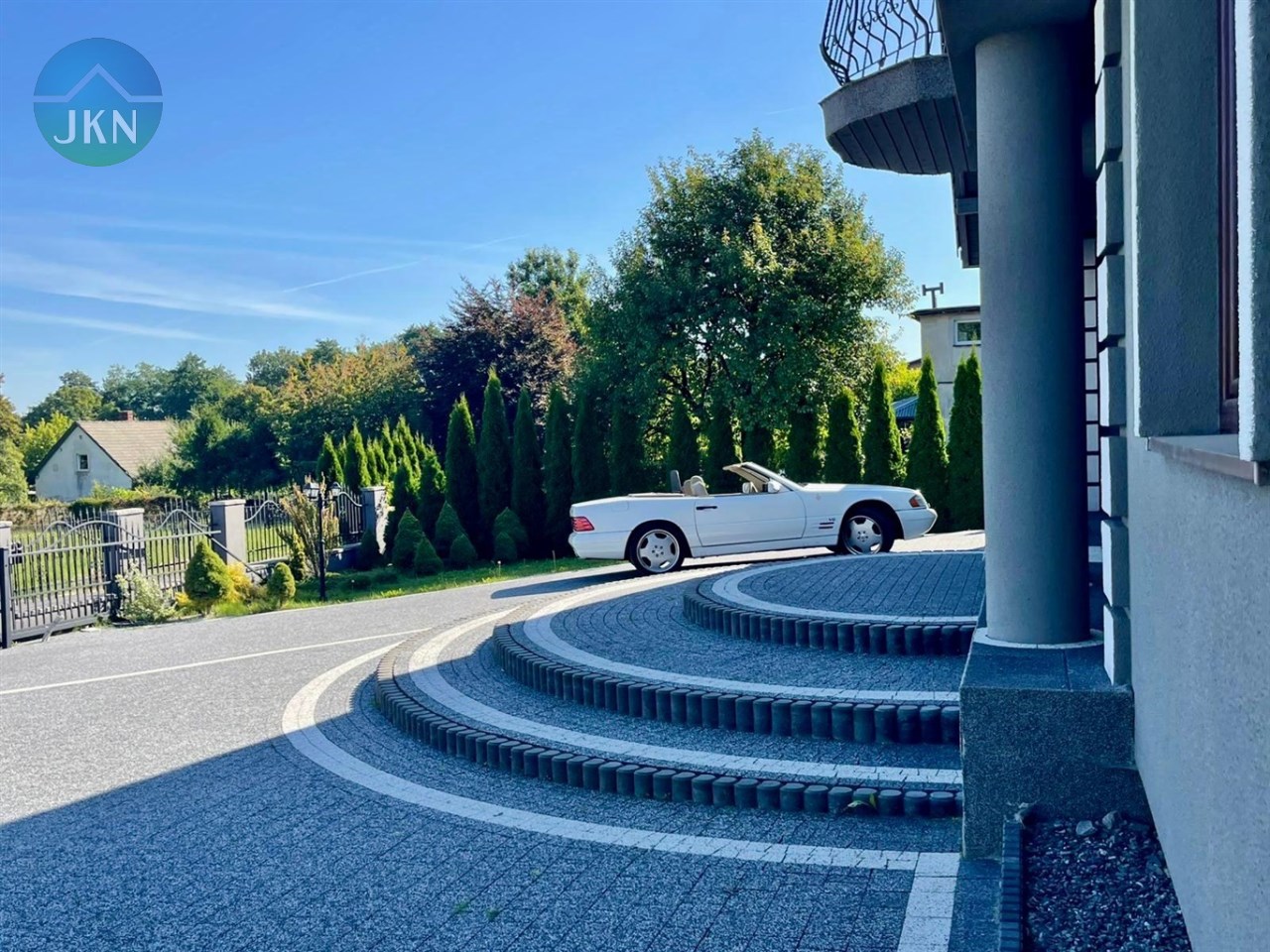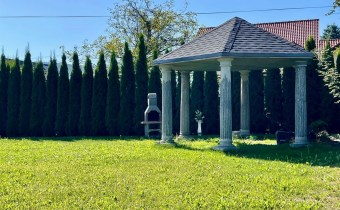 Działka o powierzchni ponad 10 arów została częściowo zagospodarowana – wykonano solidne ogrodzenie z betonu z kutymi elementami oraz duży, wybrukowany podjazd. Z tyłu budynku znajduje się część prywatna. To idealne miejsce do stworzenia ogrodu, strefy relaksu lub placu zabaw dla dzieci.