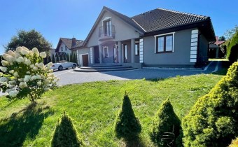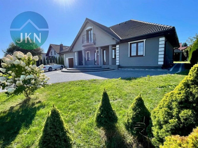 Dom został wybudowany z pustaka ceramicznego, ocieplony styropianem, a dach pokryty trwałą dachówką betonową. Wnętrza wykończone są z dbałością o detale – na podłogach znajduje się elegancki hiszpański gres, a duże okna PCV zapewniają doskonałe doświetlenie wszystkich pomieszczeń. Na parterze zastosowano ogrzewanie podłogowe, natomiast na piętrze zamontowano tradycyjne kaloryfery, co zapewnia komfort cieplny przez cały rok. Dom wyposażony jest w niezbędne instalacje: prądową, wodną i gazową. Instalacja kanalizacyjna w trakcie finalnego podłączania.
