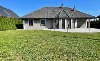 - Parter: kuchnia częściowo otwarta połączona z salonem, jadalnią i dużym holem z wyjściem na taras, 2 sypialnie, łazienka, garderoba, kotłownia oraz garaż