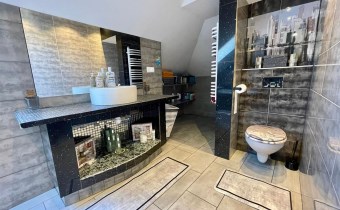 Nieruchomość położona jest w cichej, zielonej okolicy, w sąsiedztwie nowej zabudowy jednorodzinnej. Lokalizacja zapewnia ciszę i prywatność, a jednocześnie dobry dojazd do Bielsku-Białej oraz innych miast z pełną infrastrukturą w zasięgu kilku minut.