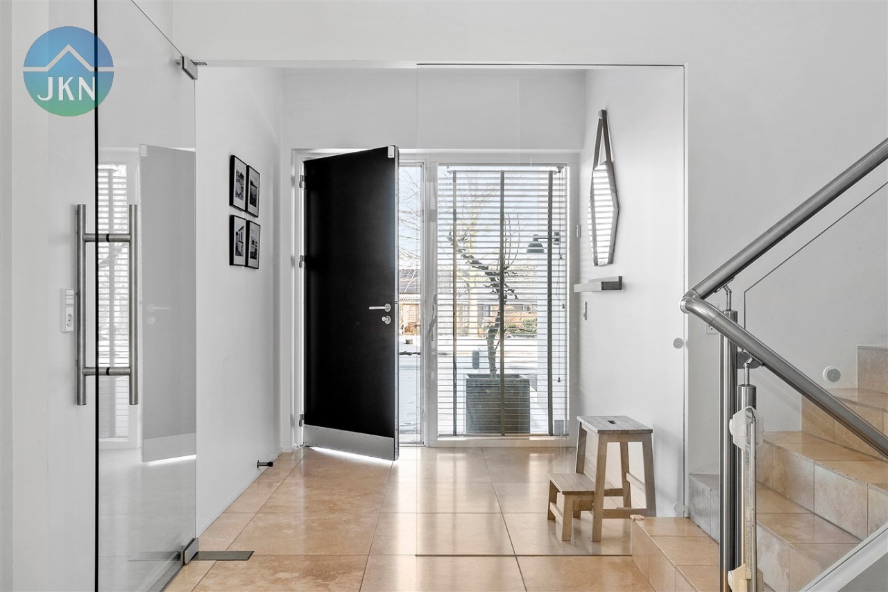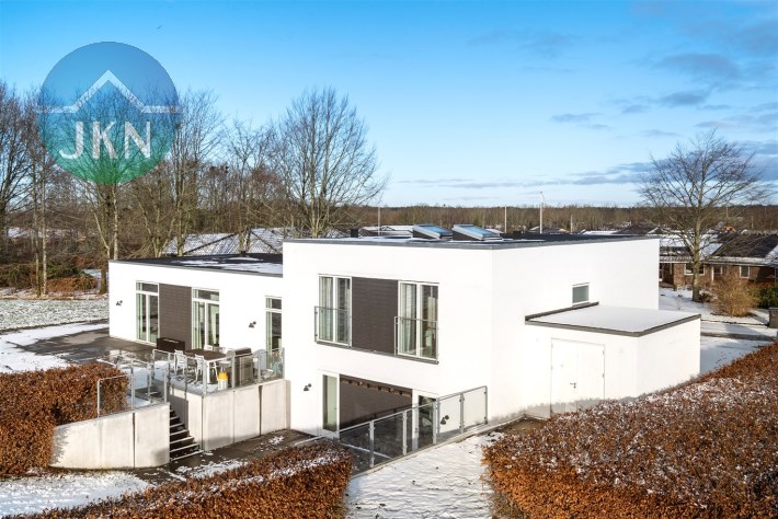 Zapraszamy do zapoznania się z ofertą sprzedaży niezwykłego, luksusowego domu, zlokalizowanego na przestronnej działce o powierzchni 18 arów w malowniczym miasteczku Give w Danii. Nieruchomości oferuje sześć funkcjonalnych pokoi, w tym przestronną sypialnię główną z garderobą i prywatną łazienką z której mamy dostęp do strefy SPA usytuowanej na tarasie. Duża przestronna kuchnia ze sprzętami AGD firmy Miele z jadalnią i z salonem o powierzchni ok. 24 m2 z możliwością wyjścia na taras i ogród. W bryle budynku, w przyziemiu znajduje się również duży garaż na dwa samochody, pomieszczenie gospodarcze oraz pralnia z dodatkową przestrzenią do przechowywania, co jest szczególnie ważne dla osób ceniących sobie komfort.