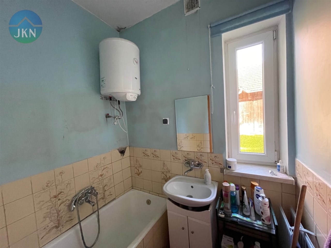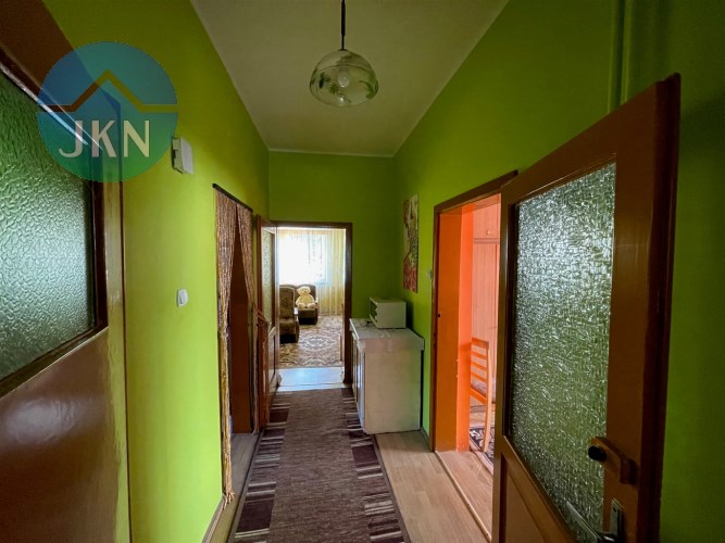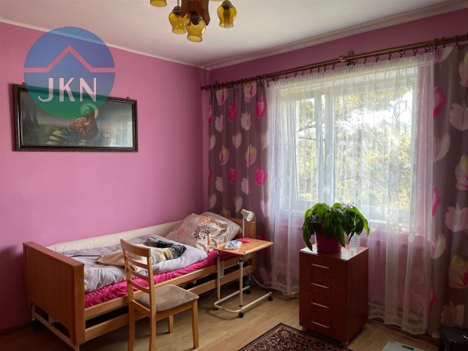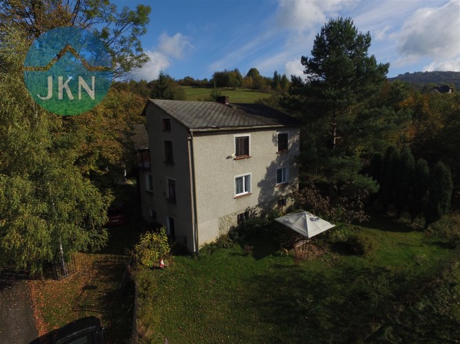 Oferujemy Państwu możliwość zakupu domu wzniesionego w 1980 r. Budynek murowany z cegły i pustaka na kamiennym fundamencie, posiada żelbetowe stropy, dach dwuspadowy pokryty eternitem, okna na parterze plastikowe, a na poddaszu drewniane. Jego powierzchnia użytkowa wynosi 136 m2, na co składają się dwie kondygnacje nadziemne. Na parterze do dyspozycji mamy pokój dzienny, kuchnię, łazienkę, wc, przedpokój i dwie duże sypialnie. W skład poddasza wchodzą dwa pokoje, aneks kuchenny, przedpokój, pomieszczenie na łazienkę, garderoba i korytarz. Parter budynku po odświeżeniu ścian można zamieszkać, poddasze wymaga remontu. Dom jest w całości podpiwniczony, posiada również strych.