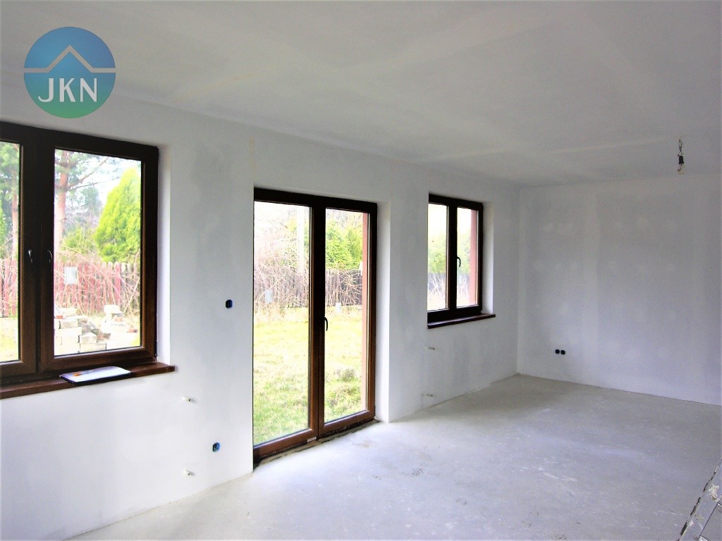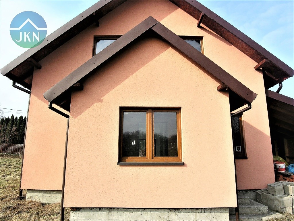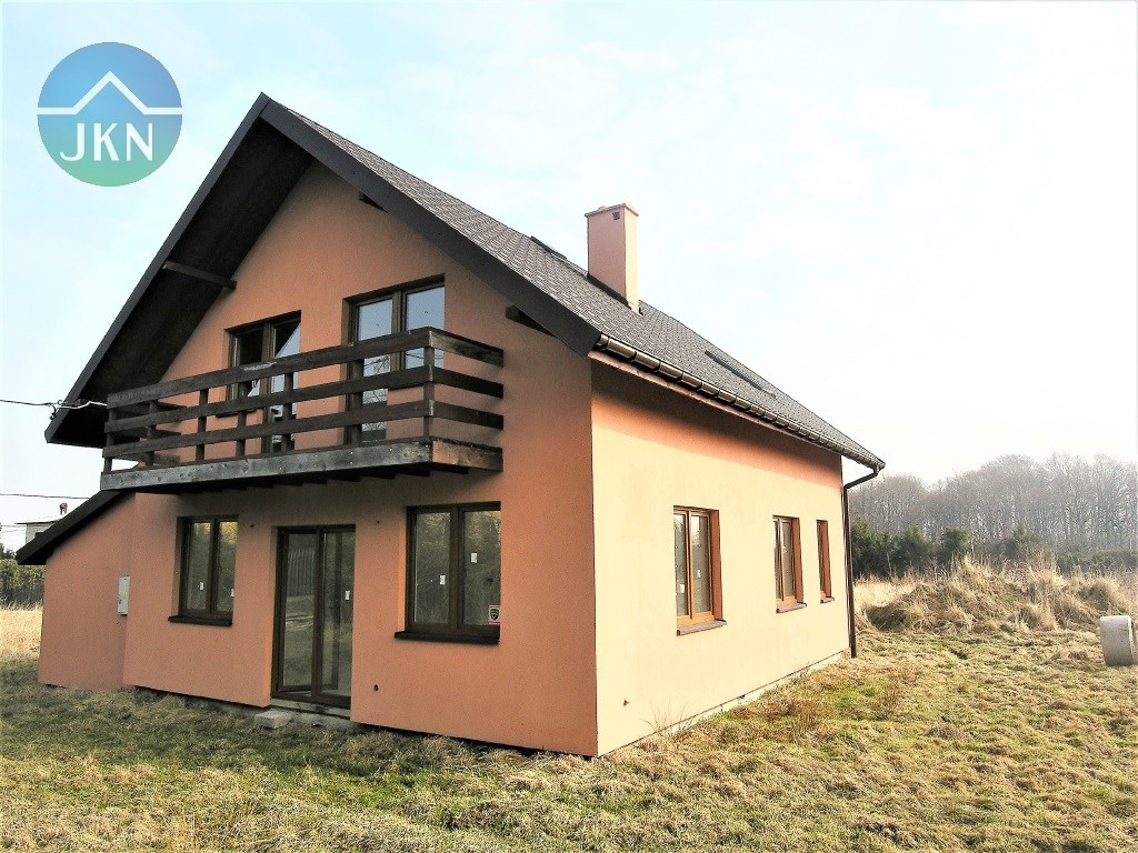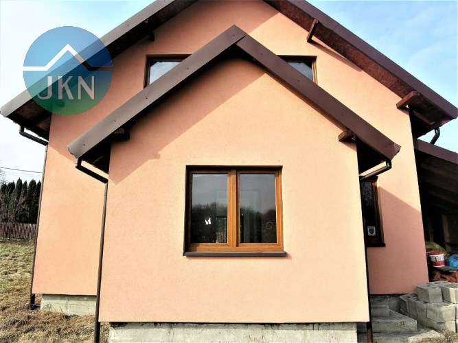Funkcjonalny i ekonomiczny dom 120 m² z wiatą na dwa samochody (30m²).Wybudowany został przez właściciela na własne potrzeby w technologii szkieletowej z najwyższej jakości drewna.