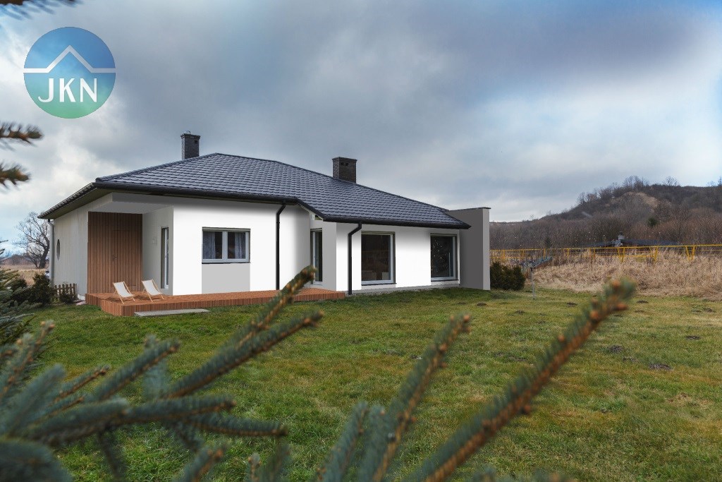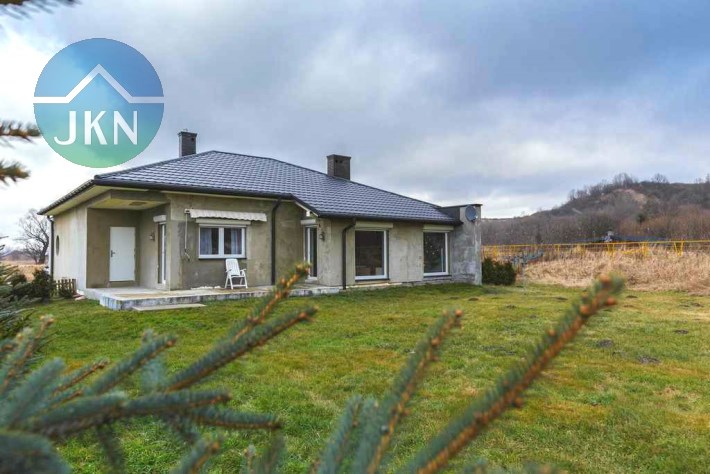 Jednopoziomowy dom położony na obrzeżach miasta, w bardzo spokojnej lokalizacji,