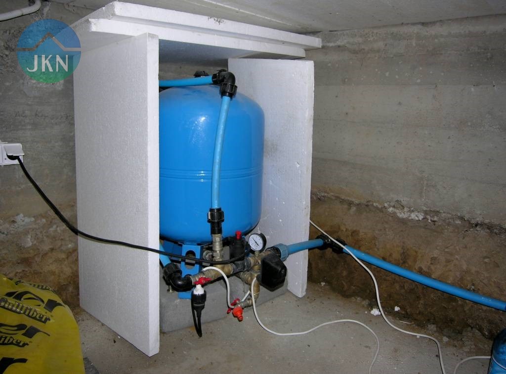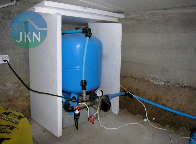 Pod tarasem niska piwniczka 24 m2 w której znajduje się hydrofor.