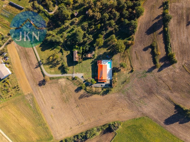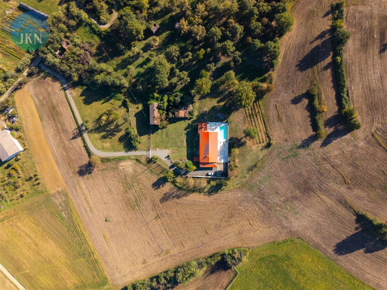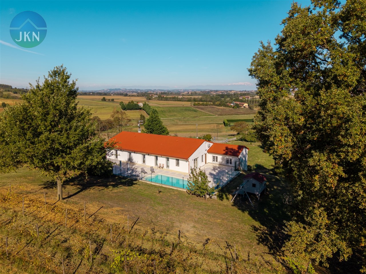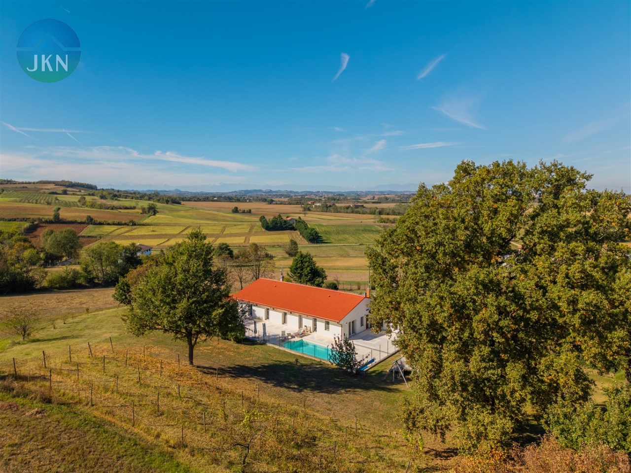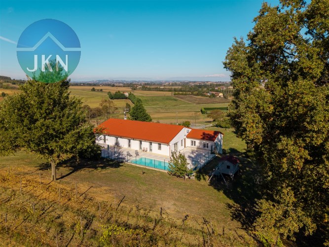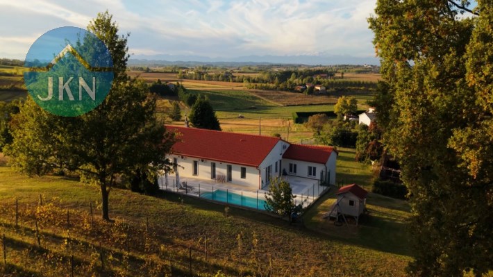 Na sprzedaż wyjątkowa, nowoczesna willa położona w malowniczej miejscowości San Salvatore Monferrato, w regionie Piemont, wpisanym na Listę Światowego Dziedzictwa UNESCO. Nieruchomość zlokalizowana jest na olbrzymiej, prywatnej działce o powierzchni około 6 ha, obejmującej duży park z sadem, winnicę oraz grunty rolne – idealne miejsce dla osób ceniących prywatność, przestrzeń i kontakt z naturą.