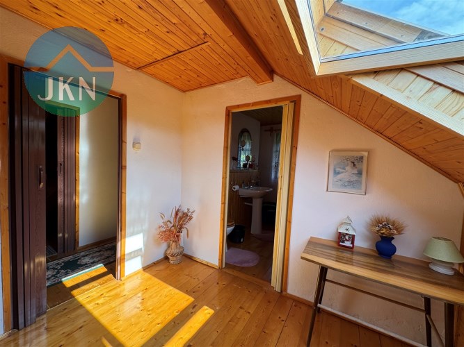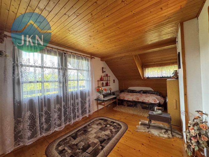 Na sprzedaż wyjątkowy dom mieszkalno-rekreacyjny o powierzchni użytkowej 103 m², położony na pięknie zagospodarowanej działce o powierzchni 1838 m². Nieruchomość znajduje się w malowniczej części Pewli Wielkiej – Wytrzeszczon, otoczonej lasami i górami, z dojazdem asfaltową drogą gminną przez las.