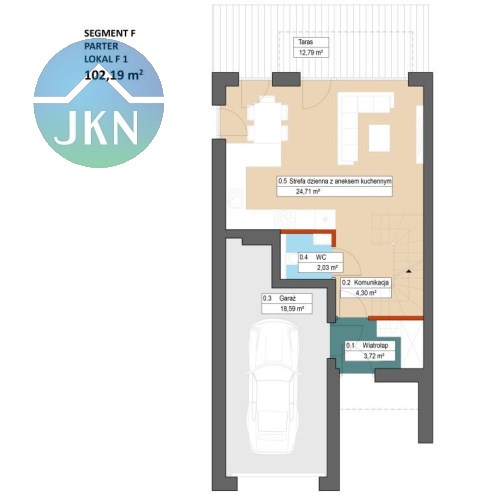 - garaż 18,59 mkw.