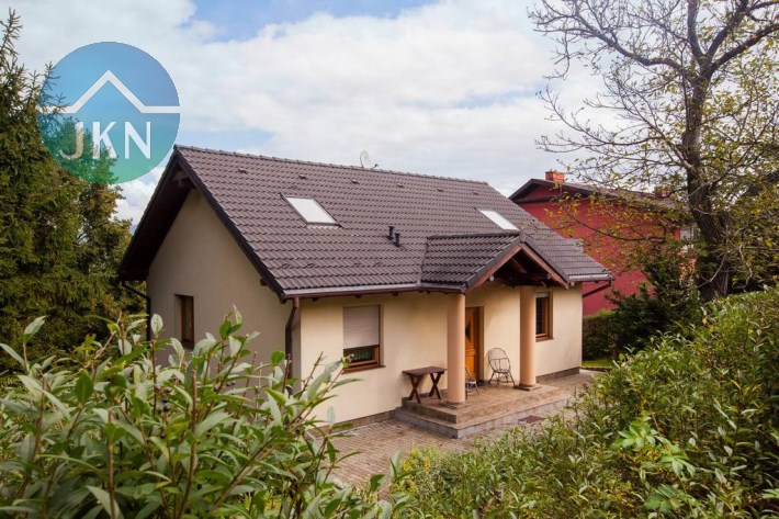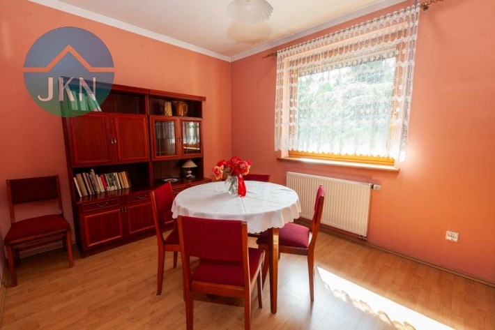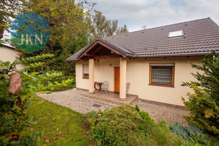 Przytulny dom o powierzchni użytkowej 90,44 m2 i powierzchni po podłodze 142 m2 położony jest na częściowo zalesionej działce o powierzchni 2626 m2 przy drodze asfaltowej. Działka w całości przeznaczona jest pod zabudowę mieszkaniową jednorodzinną. Jest częściowo zalesiona i dzięki temu jest wyjątkowa. Wymaga tylko odpowiedniego zagospodarowania. Na części działki od strony północnej mamy jar porośnięty dorodnymi drzewami, który można zagospodarować jako wyjątkowe miejsce rekreacyjne. Przy średniej cenie działek w tej okolicy 160 zł/m2 wartość działki wynosi 400 000 złotych. Kupując oferowaną nieruchomość za dom + budynek gospodarczy zapłacisz tylko 290 000 złotych. Budynek został wybudowany w technologii YTONG w roku 2003. Wyróżnia się nowoczesnym i praktycznym układem funkcjonalnym.