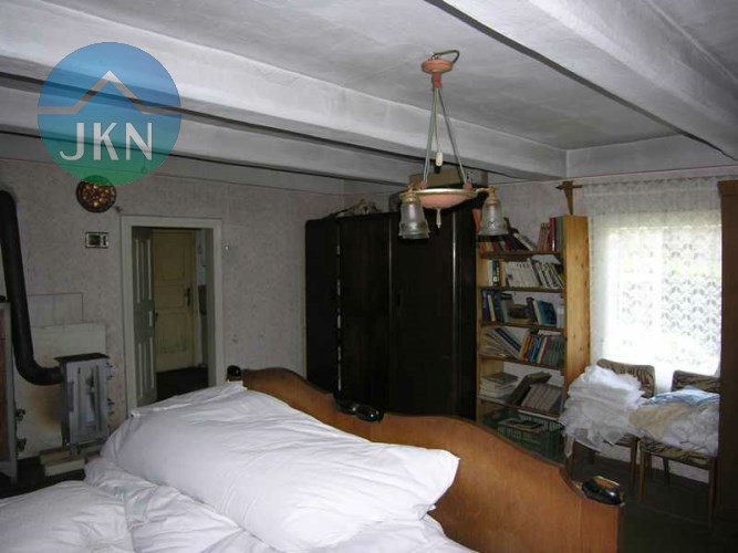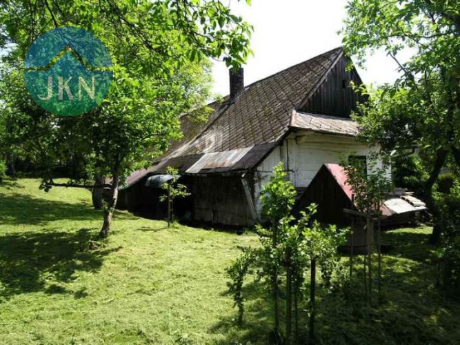 ŁODYGOWICE - drewniana chata o pow. ok. 60 m2 usytuowana na działce 500 m2 + druga działka 700 m2 po drugiej stronie ulicy + budynek gospodarczy z pokojem letnim. Media: prąd, woda (studnia + wodociąg), gaz i kanalizacja na działce. Dojazd drogą publiczną, asfaltową.