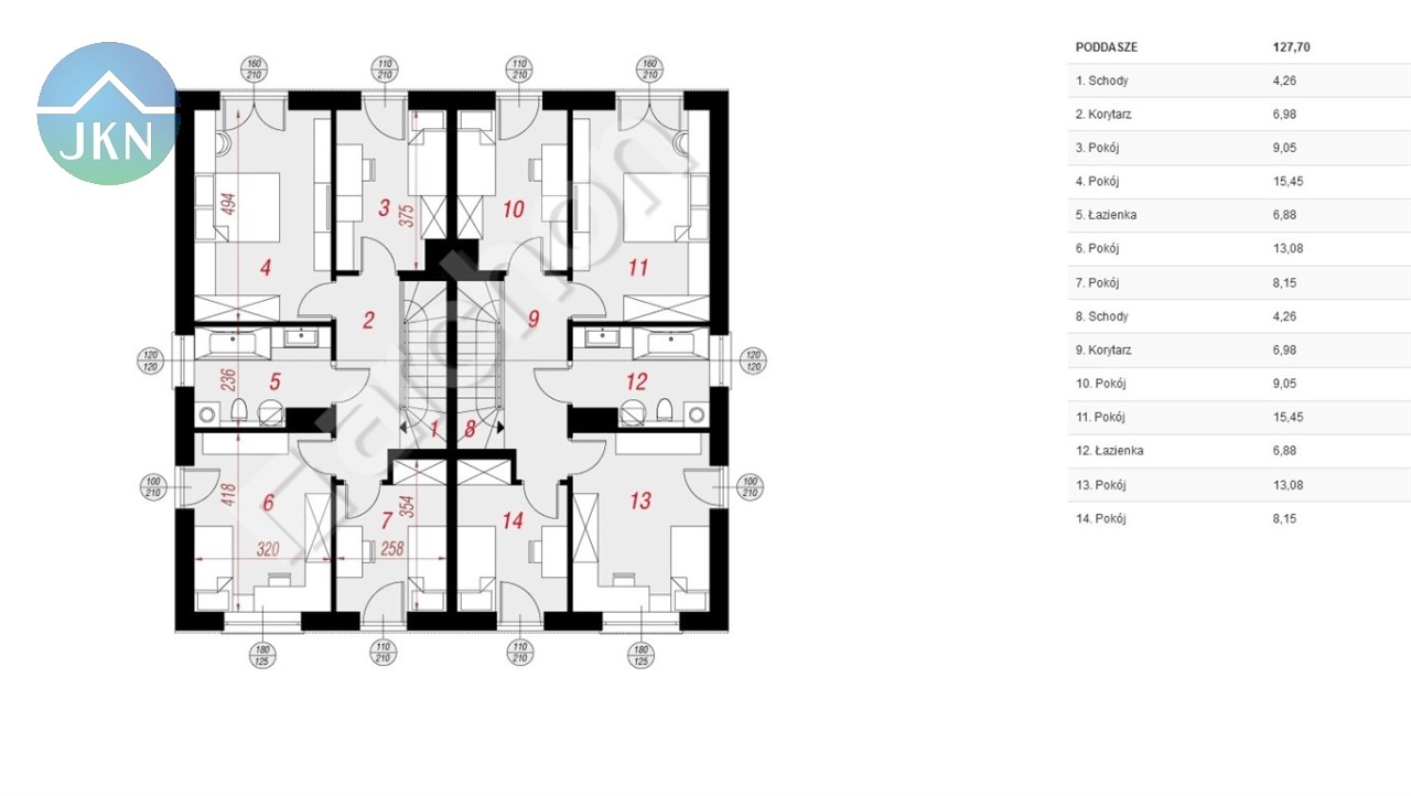 Powierzchnia działki: od ok. 330 do ok. 582m2 (w zależności który budynek)