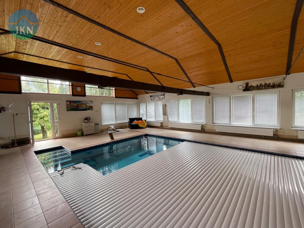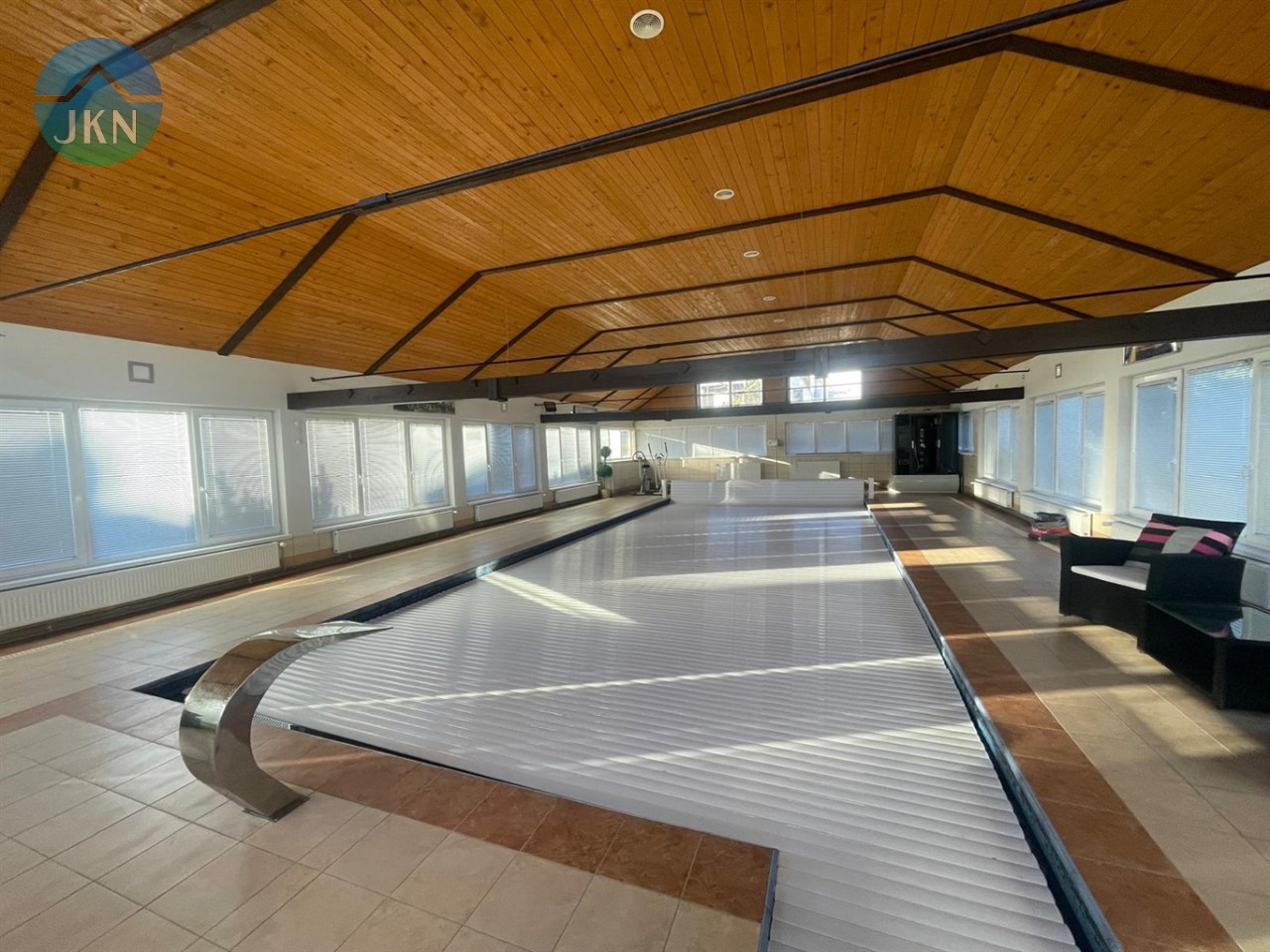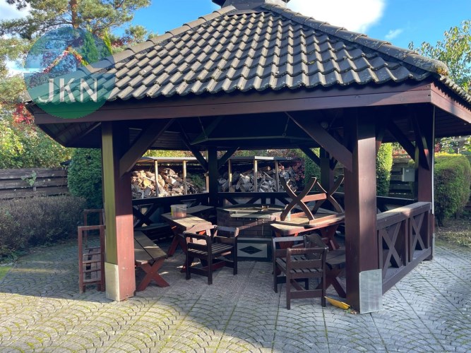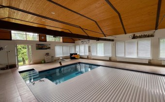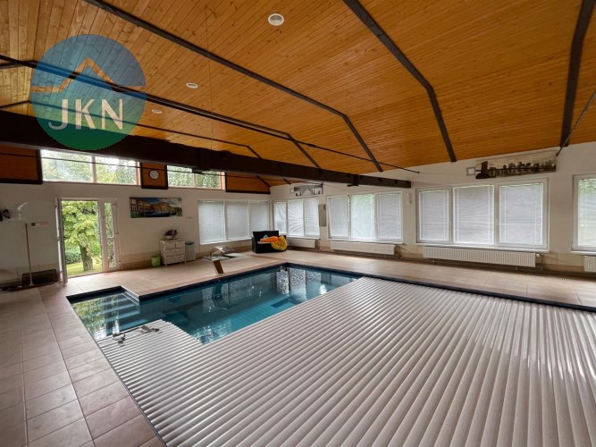 Basen: przestronny basen o głębokości 1,4 m, wymiarach 12,8 x 5,5 m, wyposażony w masaż wodny oraz system przeciwprądowy. Basen jest podgrzewany, z automatyczną roletą i wodą o temperaturze 28°C, oczyszczaną za pomocą chloru. Dodatkowo, na dachu znajdują się solary, które zapewniają efektywne ogrzewanie wody.