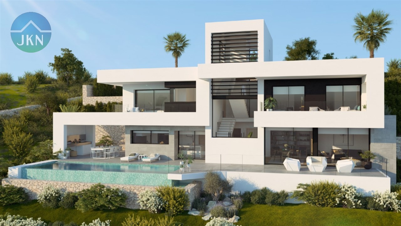 Wyszukany styl widzimy również w części zewnętrznej inwestycji. Przestrzenie zewnętrzne są szczególnie ważne w tej nieruchomości, ponieważ jej wspaniałe widoki i śródziemnomorski klimat zachęcają nas do życia na zewnątrz. Przestronna działka jest w pełni zagospodarowana. Znajdziemy tu prywatny basen typu infinity, wykończony ogród z automatycznym nawadnianiem, część wypoczynkową z pergolą i z miejscem na leżaki oraz strefę do grillowania.
