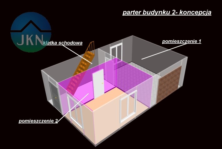 - Budynek 2 – wymagający remontu, zbudowany w technologii mieszanej.