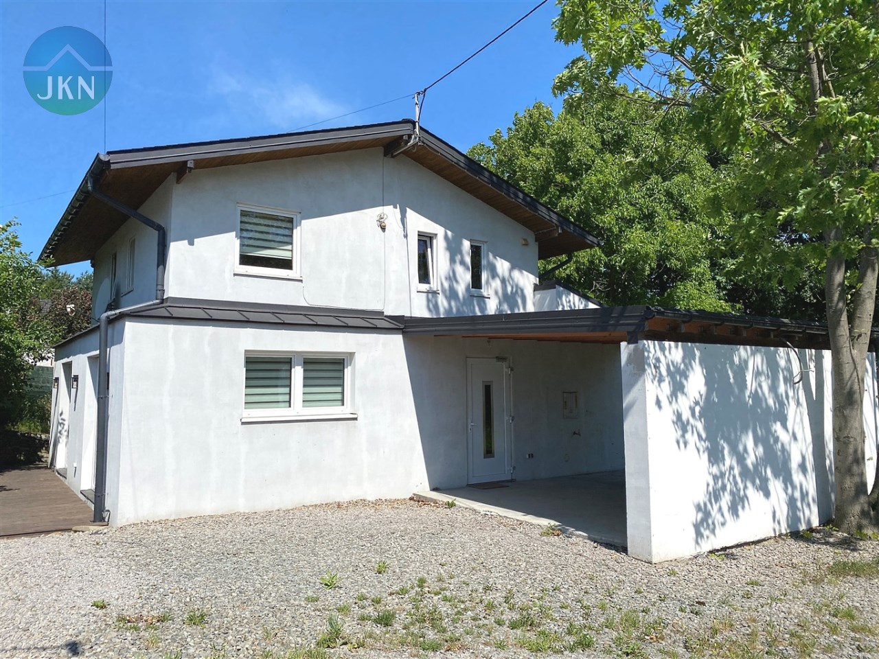 DOM JEDNORODZINNY o powierzchni całkowitej 114,40mkw. z dobudowaną wiatą garażowa obok budynku. Parterowy z poddaszem użytkowym położony na ogrodzonej, zagospodarowanej parceli o powierzchni 879mkw.