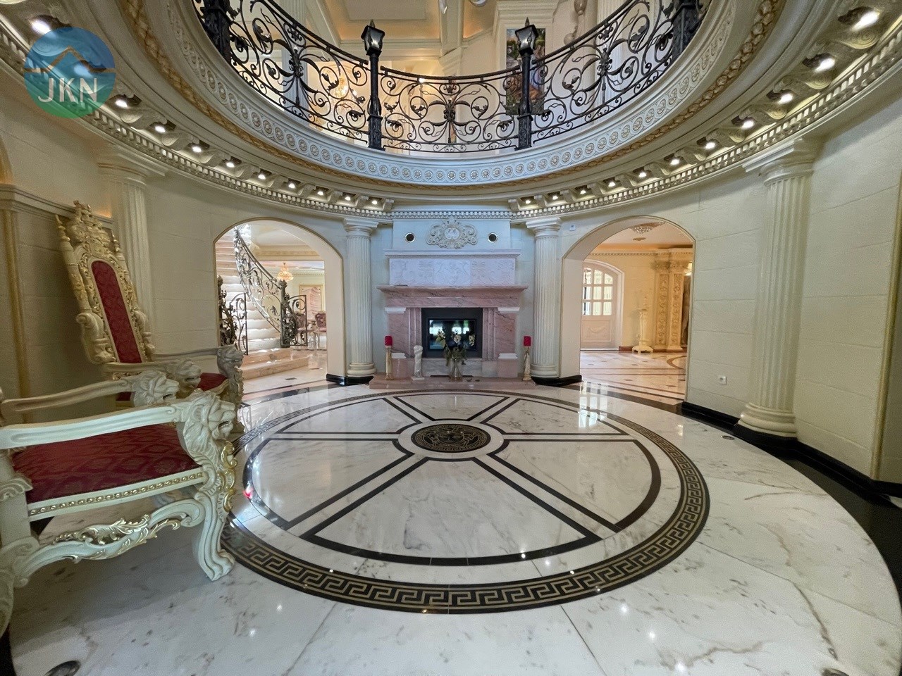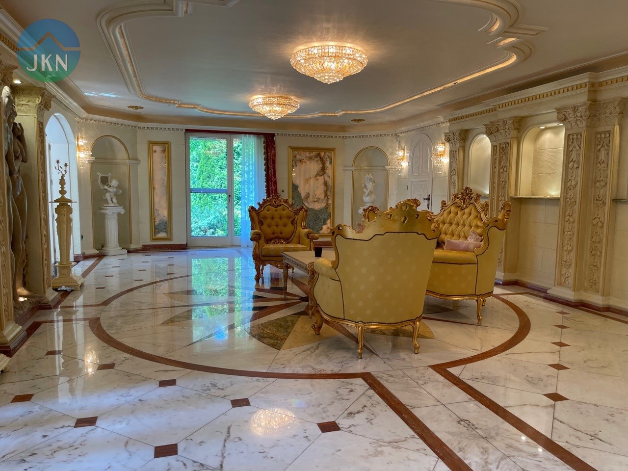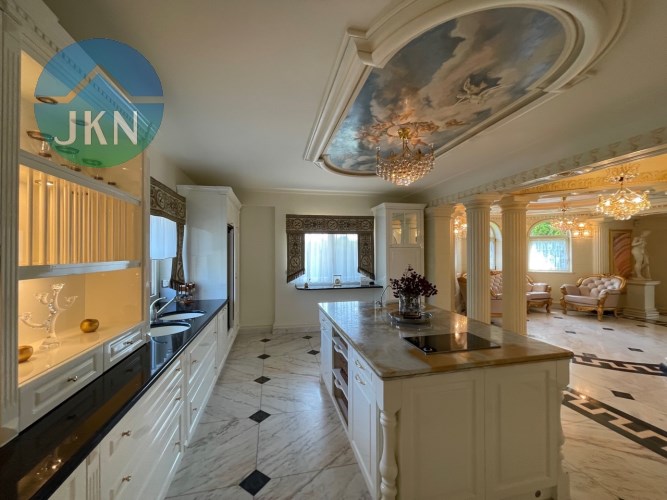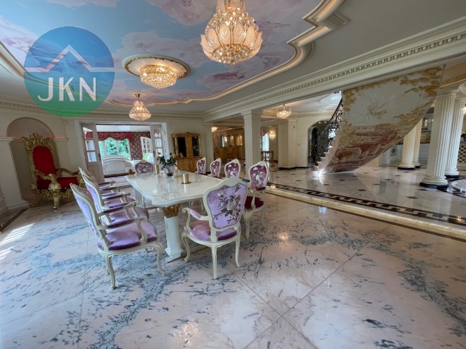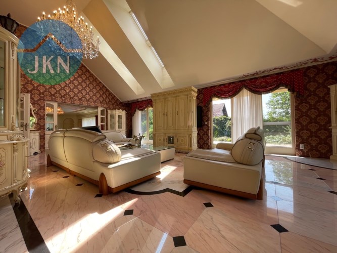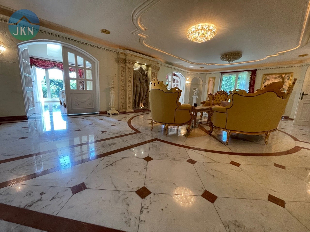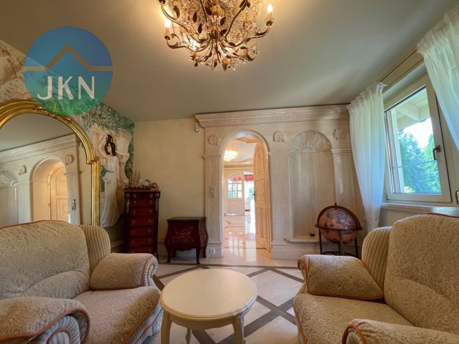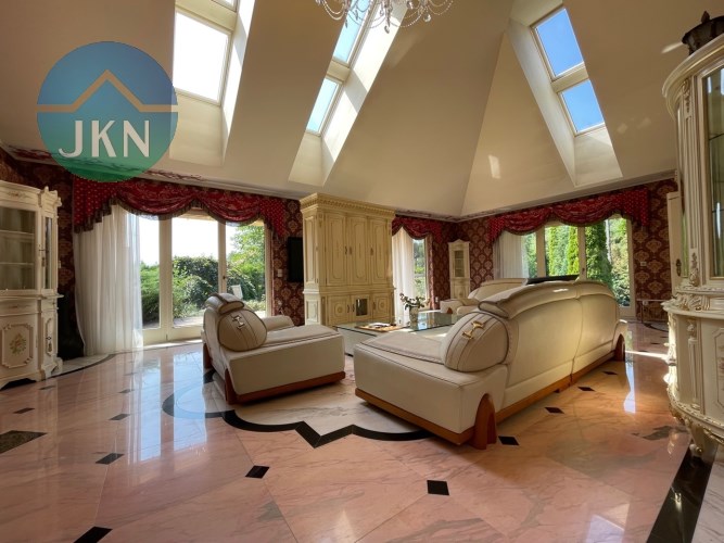 - WYSOKI PARTER: hall, garderoba, toaleta, kuchnia, duża jadalnia, pokój herbaciany, pokój TV, salon kawowy z wyjściem na taras i zejściem do basenu, gabinet