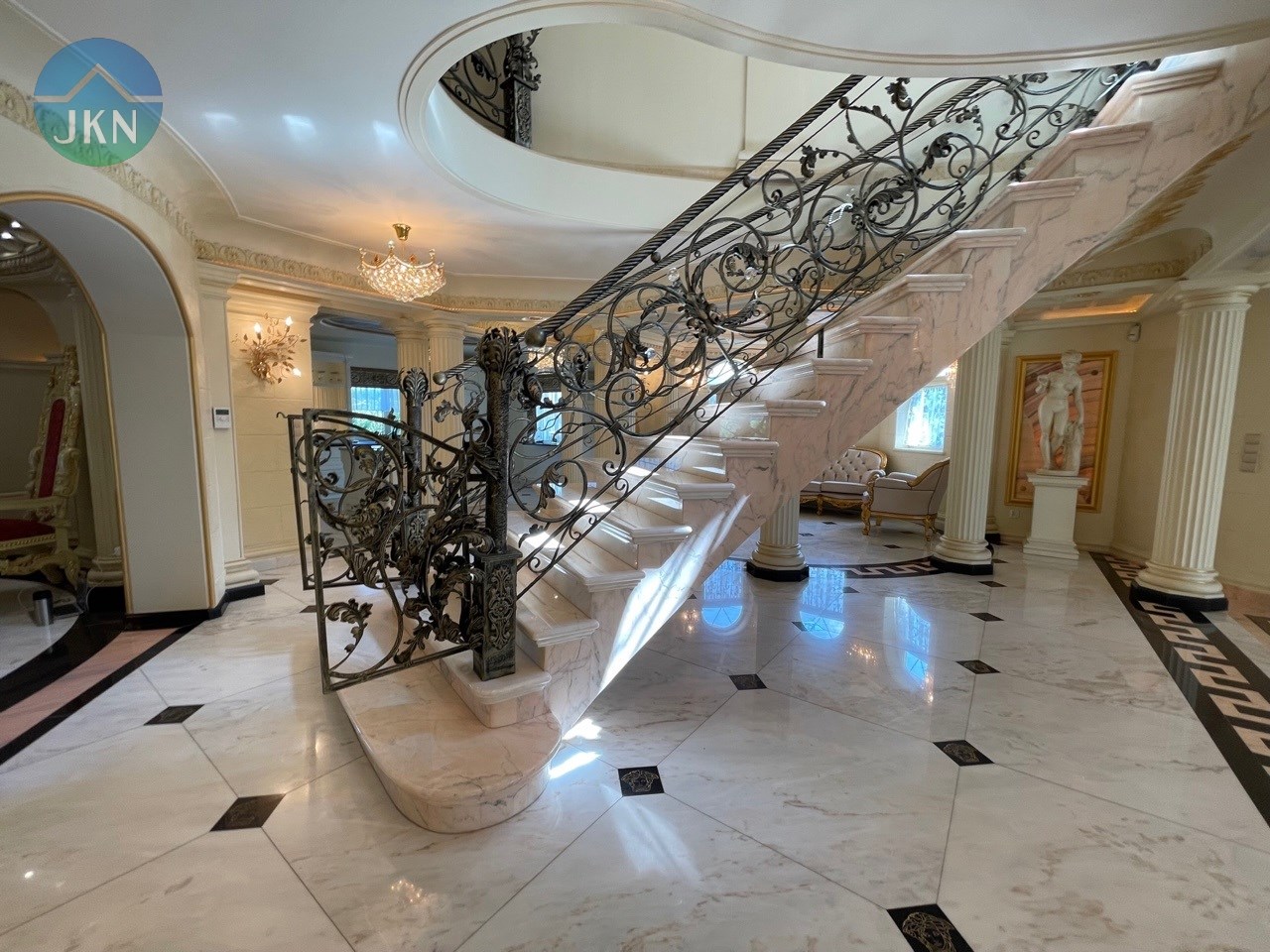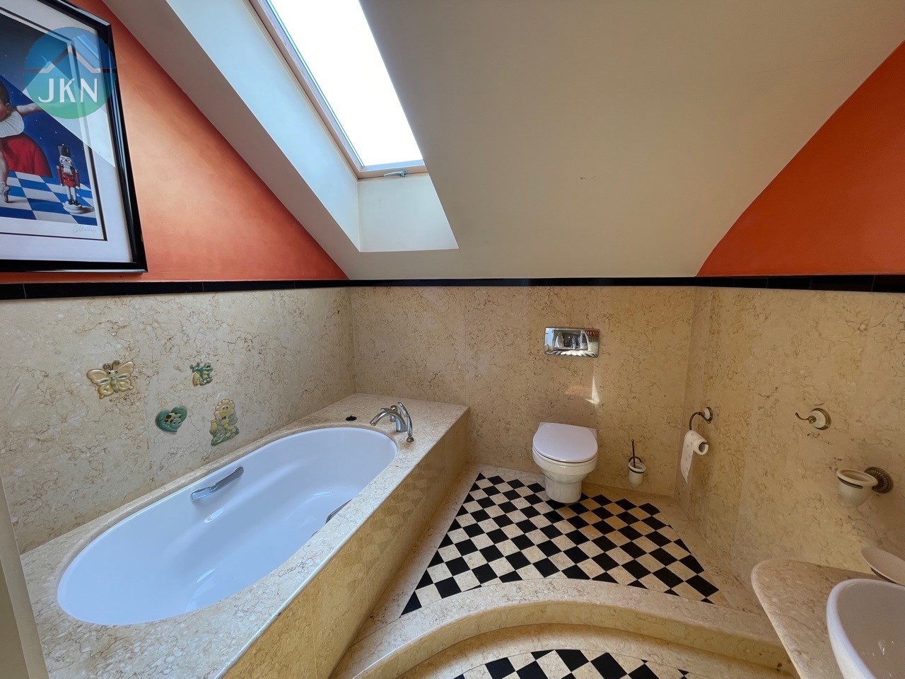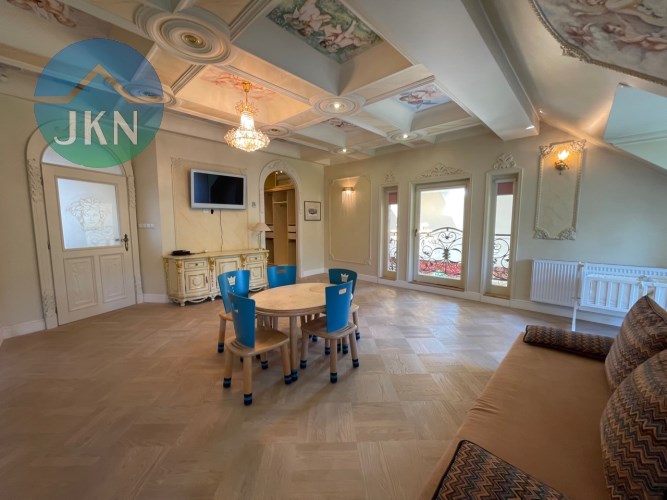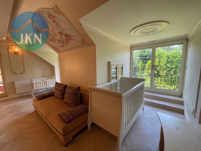 - PIĘTRO: hall z kanapą i wyjściem na taras, sypialnia z własną łazienką i garderobą, pokój dziecięcy z 2 balkonami, duża garderoba (przejściowa), duża łazienka z wanną i dużą deszczownicą, pokój rekreacyjny ze stołem bilardowym