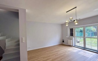Na wynajem nowoczesny dom w zabudowie szeregowej po generalnym remoncie, z garażem i ogrodem, zlokalizowany na spokojnym, zadbanym osiedlu z pełną infrastrukturą – w bezpośrednim sąsiedztwie znajdują się sklepy, szkoła, przedszkole oraz przystanek autobusowy, co zapewnia wygodę codziennego życia.