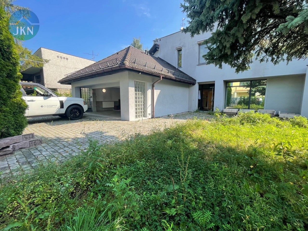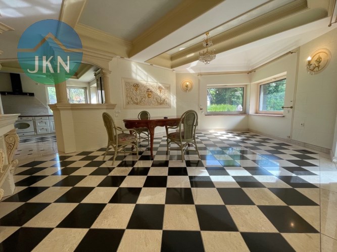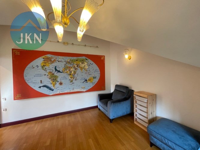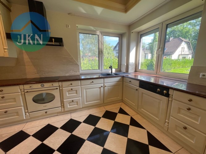 Willa z garażem na 2 samochody usytuowana na dużej, słonecznej działce. Zadbany i ładnie zagospodarowany ogród, a cały podjazd wyłożony kostką brukową. Teren ogrodzony i zamknięty, brama automatyczna, kamery zewnętrzne, system alarmowy. To idealne miejsce do zamieszkania przez osoby, które chcą żyć z dala od zgiełku i hałasu w otoczeniu przyrody. W pobliżu rzeka Wisła, las oraz liczne tereny zielone.