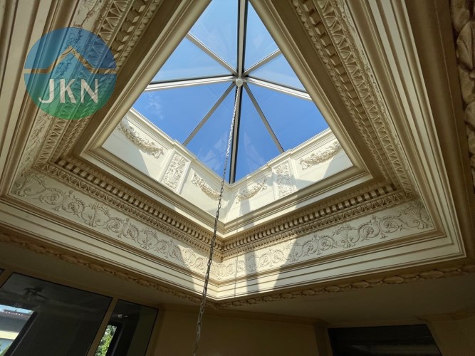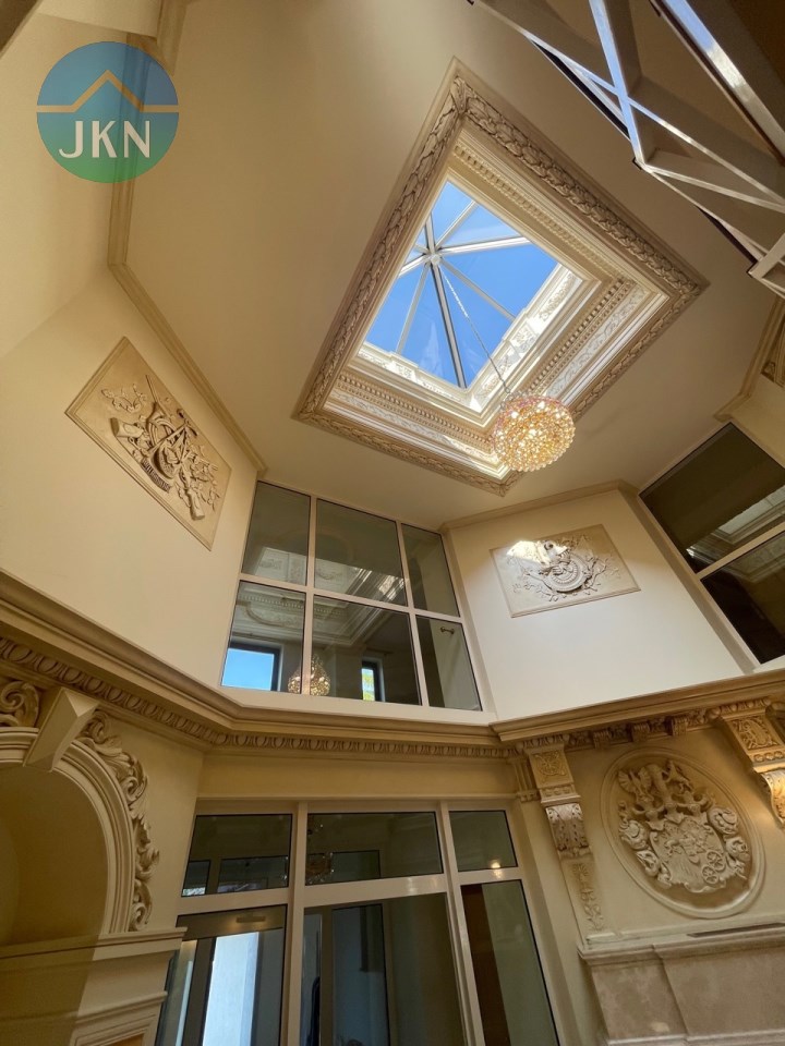 - Okna: okna drewniane z moskitierami + rolety zewnętrzne elektryczne