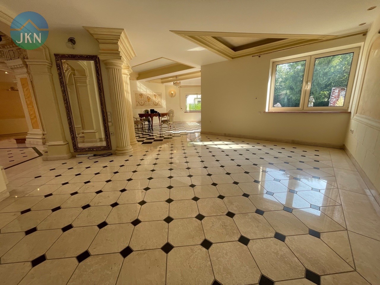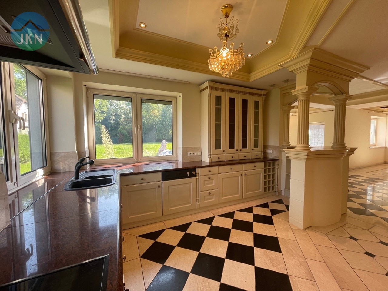 PARTER: Olbrzymi salon z jadalnią i kuchnią z wyjściem na taras, duży garaż na dwa samochody, toaleta, spiżarka, garderoba, kotłownia