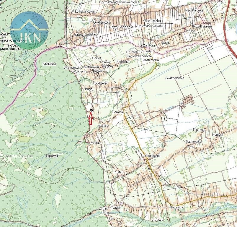 Atutem działki jest dobry dojazd drogą asfaltową i bliska odległość do zjazdu z drogi szybkiego ruchu Łodygowice.