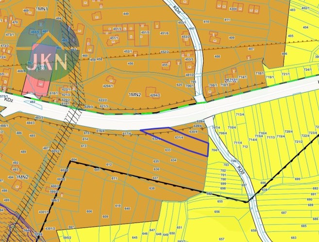 Według miejscowego planu zagospodarowania przestrzennego działka leży w terenach o oznaczeniu 1MN2 - Tereny zabudowy mieszkaniowej jednorodzinnej z usługami wolnostojącymi lub w budynkach mieszkalnych, o powierzchni usług wynoszącej maksimum 49% powierzchni użytkowej budynku mieszkalnego.