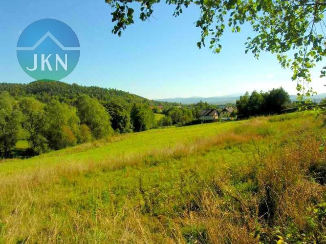 Działka w Łodygowicach, położona pod lasem, przeznaczona pod zabudowę mieszkaniową jednorodzinną.