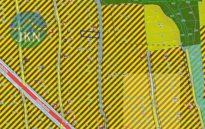 W skład nabywanego terenu wchodzi jedna oddzielnie leżąca działka o przeznaczeniu mieszkaniowym jednorodzinnym i zagrodowym MM5 o powierzchni 598 m2 i wymiarach 14m x 44m .