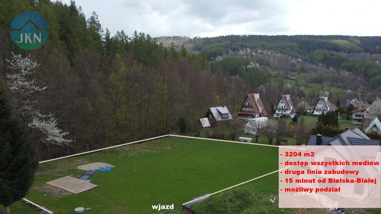 Widokowa działka budowlana o powierzchni 3204 m2 ze wszystkimi mediami, położona w ustronnym, cichym i malowniczym miejscu.Z działki dostęp do górskiego potoku a od strony północno zachodniej zaczynają się lasy na stoku Magurki Wilkowickiej. Działka w drugiej linii zabudowy. Wielkość działki pozwala postawić dom lub dwa domy zachowując luźną zabudowę.