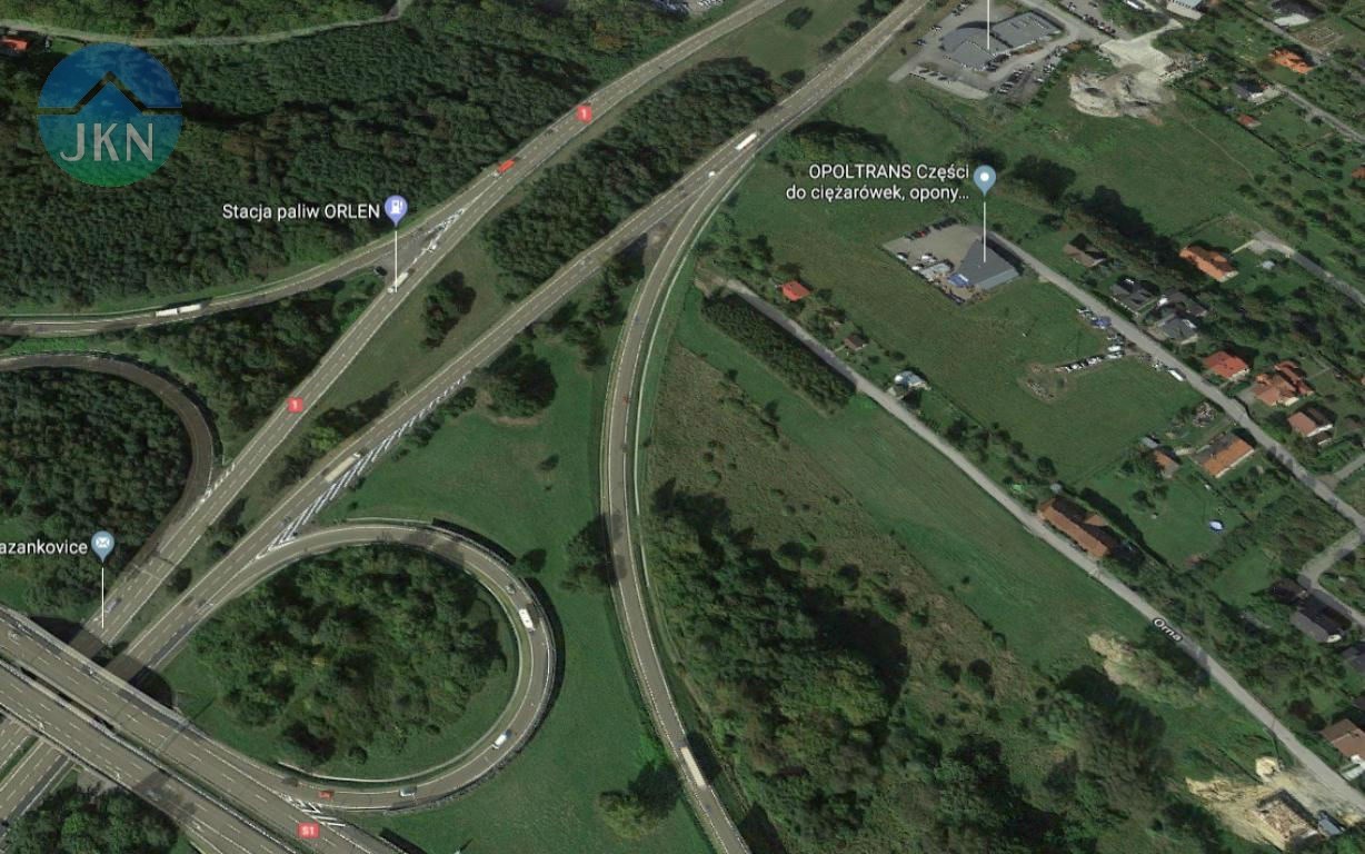 Lokalizacja: Działka znajduje się bezpośrednio przy głównej Drodze Krajowej DK1, co sprawia, że jest doskonale wyeksponowana i idealna pod różnorodne działalności, takie jak park handlowy, salon samochodowy czy skład budowlany.