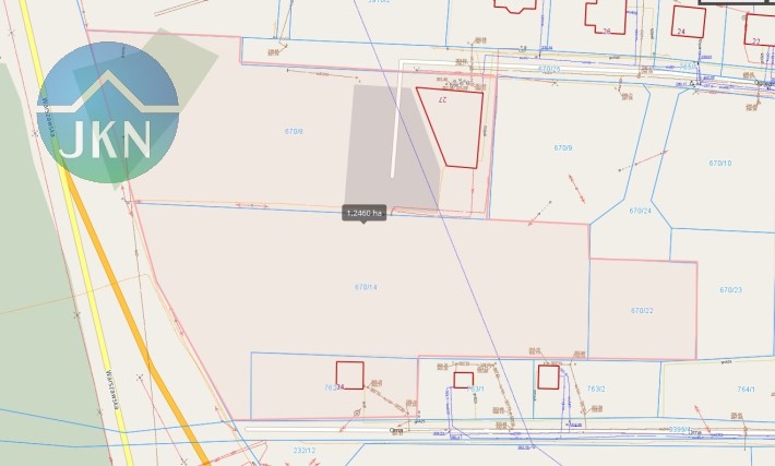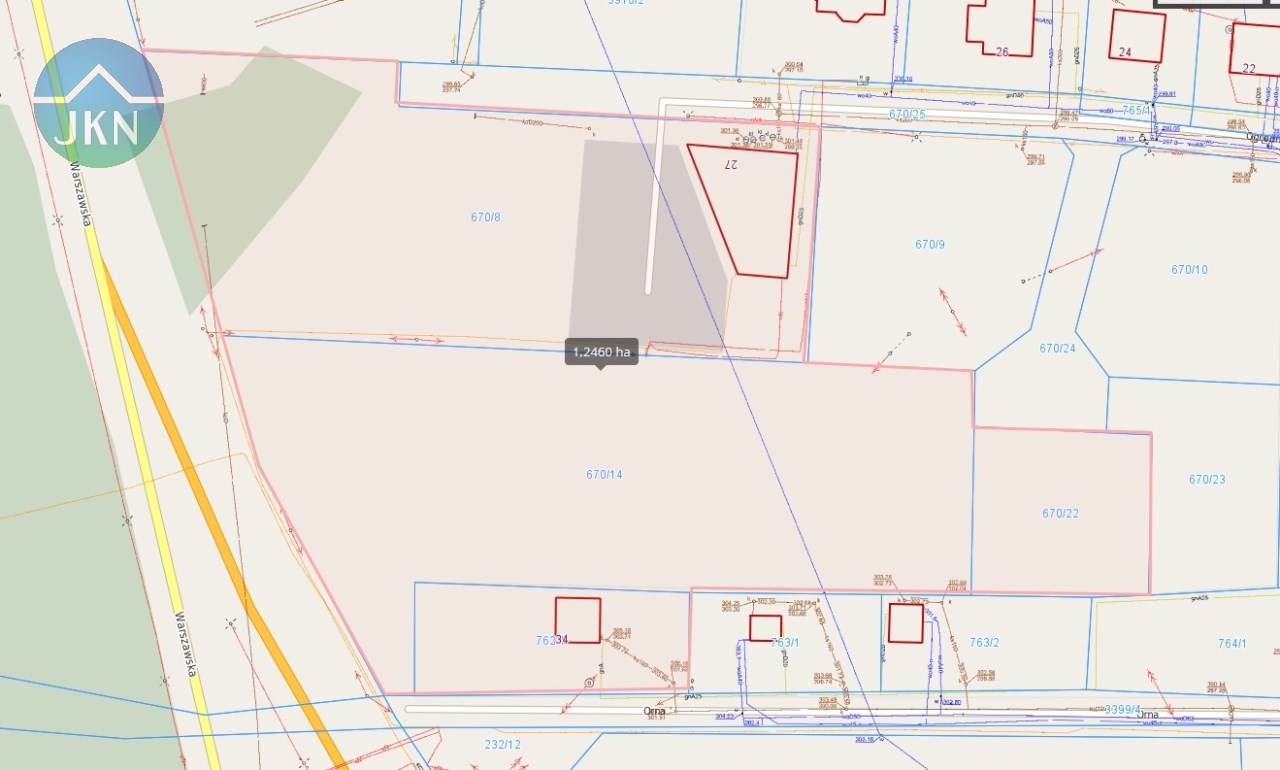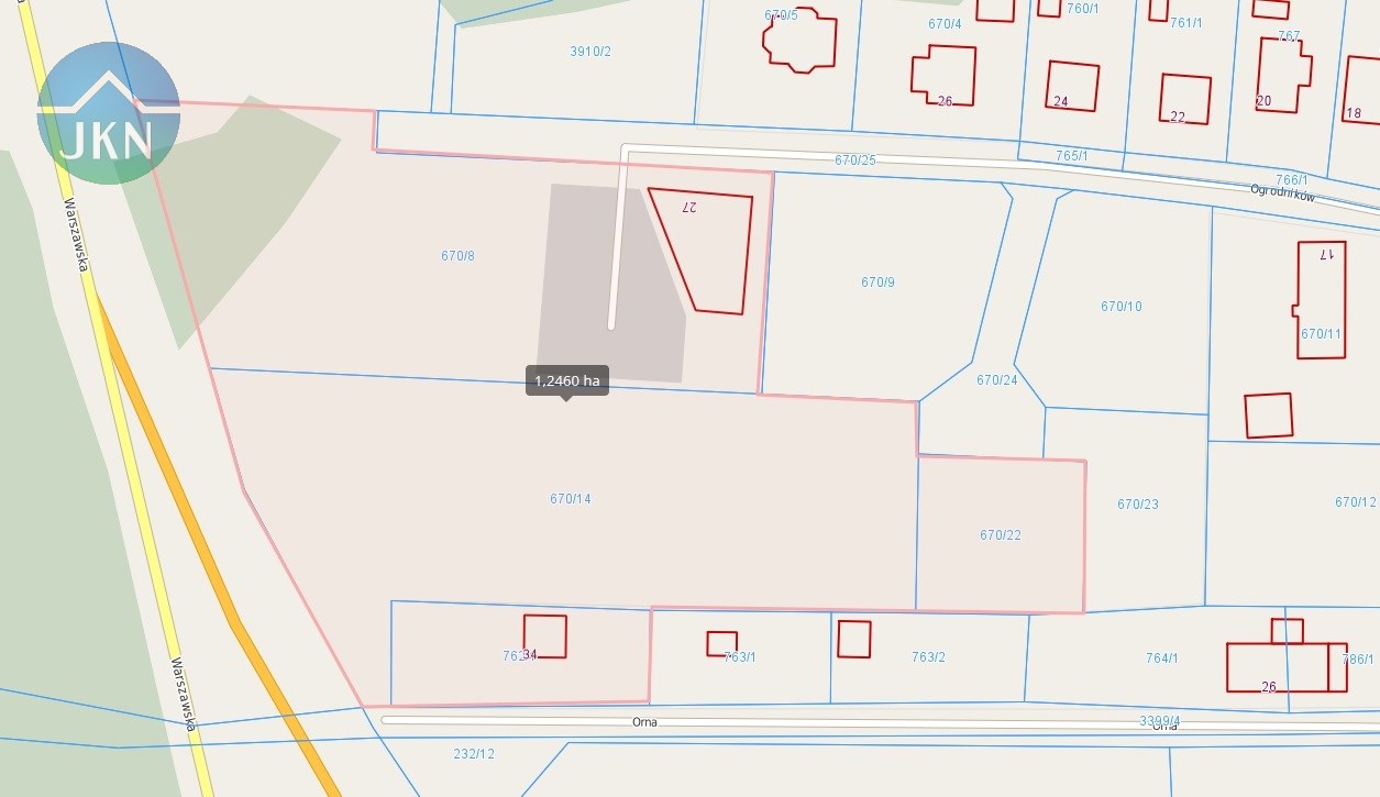 - Nr 670/8 - pow. 5 116 m², z istniejącym budynkiem usługowym o pow. 322 m²