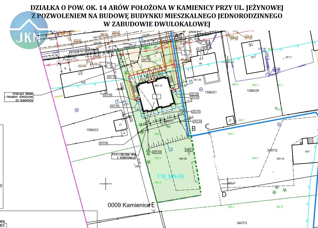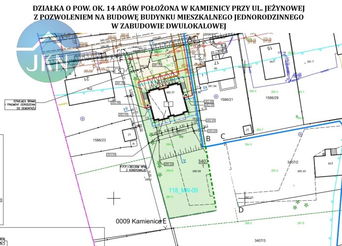 ATRAKCYJNA DZIAŁKA BUDOWLANA OZNACZONA NUMEREM „A”, O POW. OK. 14 ARÓW Z POZWOLENIEM NA BUDOWĘ BUDYNKU JEDNORODZINNEGO W ZABUDOWIE DWULOKALOWEJ oraz PROJEKTEM SIECI, POŁOŻONA W ZIELONEJ DZIELNICY MIASTA BIELSKA-BIAŁEJ – KAMIENICY PRZY UL. JEŻYNOWEJ.