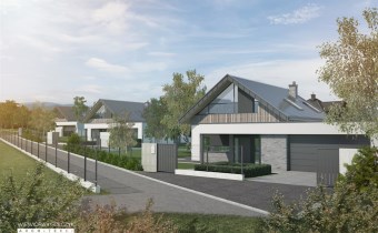 Obecny właściciel posiada dokumentację techniczną i ważną decyzję zezwalającą na budowę nowoczesnego budynku mieszkalnego o pow. 176 m2 z garażem dwu-stanowiskowym o pow. 41 m2 wg indywidualnego projektu architektonicznego.