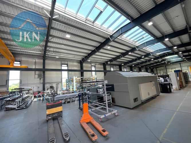- Oświetlenie naturalne: Świetliki szklane oraz okna w północnej części elewacji zapewniające doskonałe doświetlenie wnętrza światłem dziennym