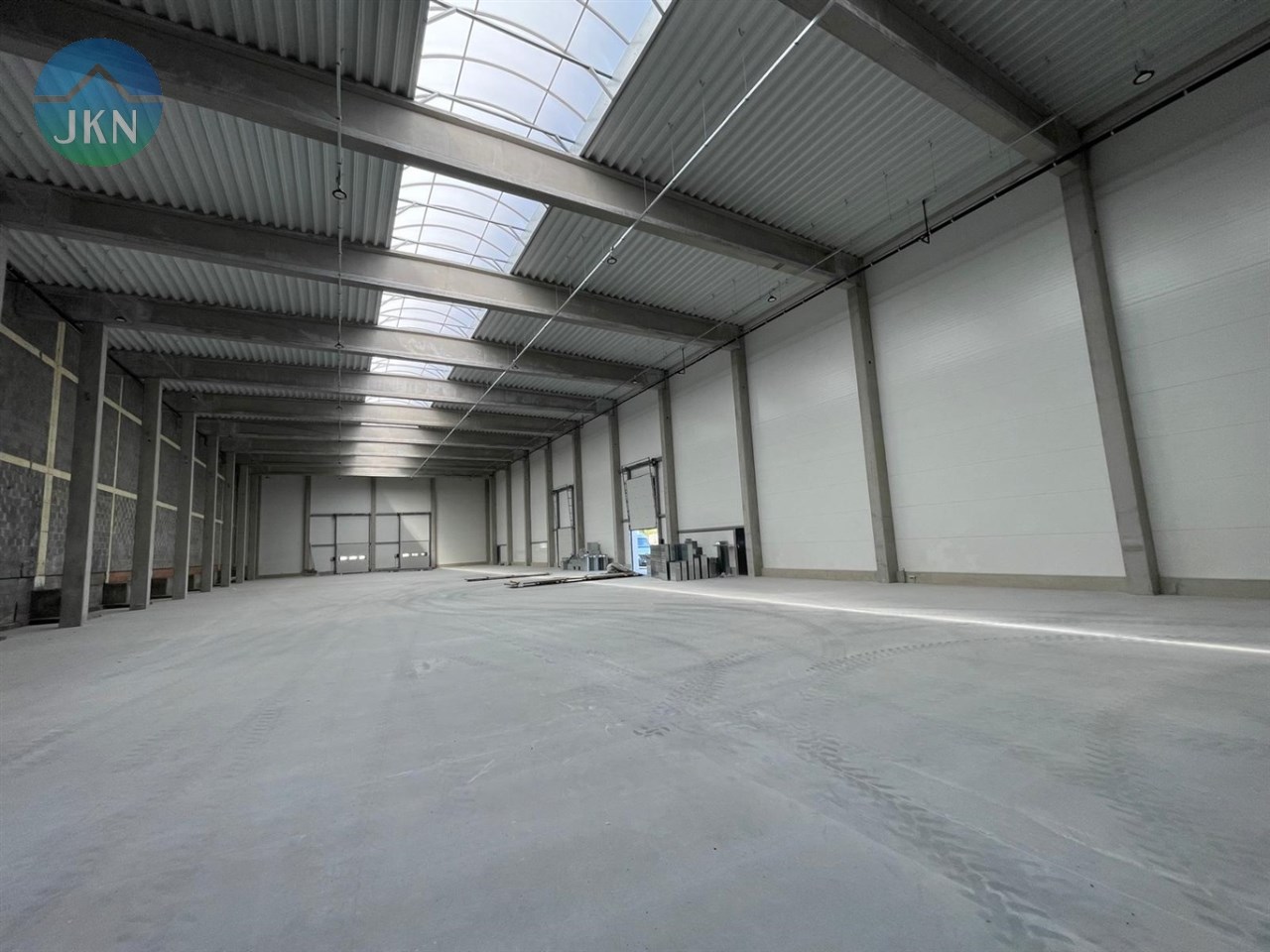 - Oświetlenie naturalne: Świetliki szklane na hali oraz okna w części biurowej