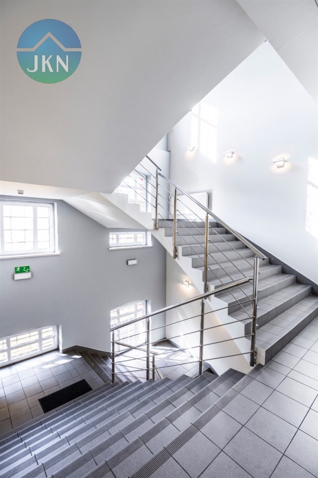 Atutem jest wysoki standard, komfortowe rozwiązania oraz wyposażenie pomieszczeń biurowych w nowoczesną infrastrukturę techniczną. Posiadamy oddzielne pomieszczenia serwerowni do której doprowadzone są łącza teletechniczne światłowodowe, radiowe i miedziane. Pomieszczenia biurowe wyposażone są w infrastrukturę teleinformatyczną, gniazda sieci elektrycznej zwykłe i z podtrzymaniem napięcia z centralnego urządzenia UPS, posiadają monitoring elektroniczny wraz z rejestracją video, instalację domofonową. Wysokość pomieszczeń biurowych wynosi 310cm, na podłogach położona jest wykładzina elektrostatyczna, każde pomieszczenie posiada regulowaną indywidualnie klimatyzacją, mechaniczną wentylacją nawiewną i wywiewną. Do dyspozycji najemcy, w cenie najmu, są pomieszczenia dodatkowe jak sala konferencyjna, kuchnia z jadalnią, palarnia, toalety. Dostęp do biur zapewniają dwie luksusowe klatki schodowe oraz nowoczesna winda, tym samym pomieszczenia są dostępne dla osób niepełnosprawnych.