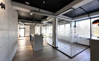 - podział wnętrza na boksy biurowe - wykonanie szklanych ścianek działowych