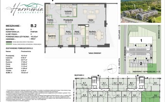 W ofercie są dostępne różne typy apartamentów, dostosowane do indywidualnych potrzeb i preferencji. Apartamenty Harmonia to 78 mieszkań (w dwóch budynkach) o powierzchni użytkowej od 39m2. Apartamenty na parterze mają dostęp do indywidualnych ogródków, natomiast na wyższych kondygnacjach posiadają balkony, loggie oraz ogrody zimowe.