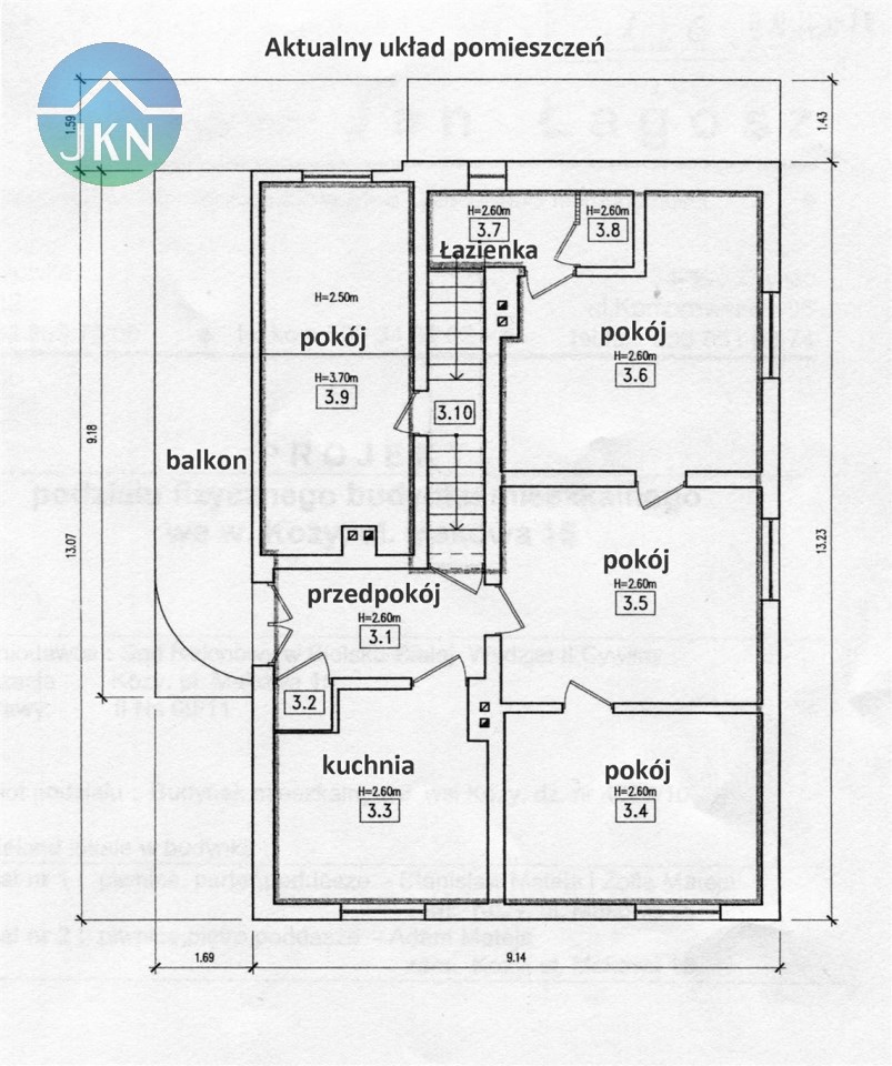 - 3 pokoi (pow. 15,17,18 m2) na 1 piętrze i dużego pomieszczenia (pow.17 m2) na półpiętrze