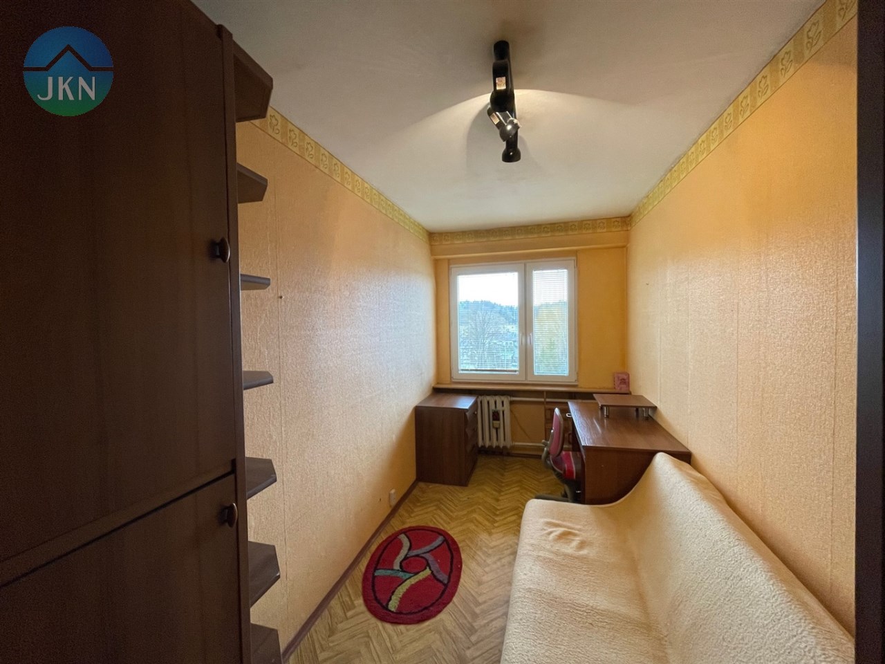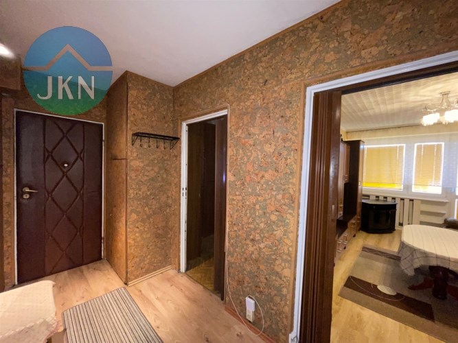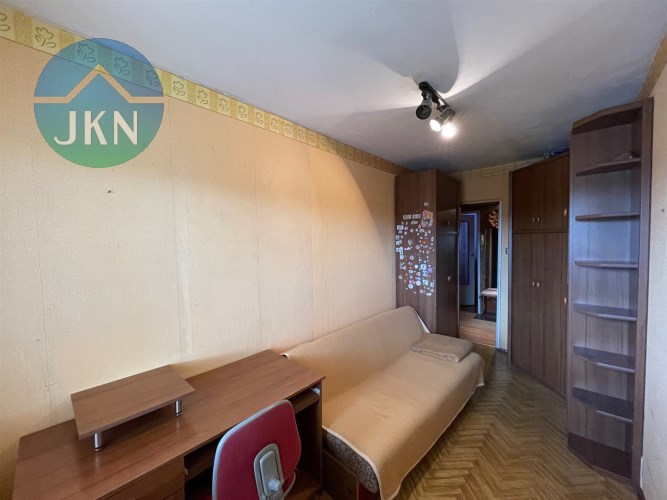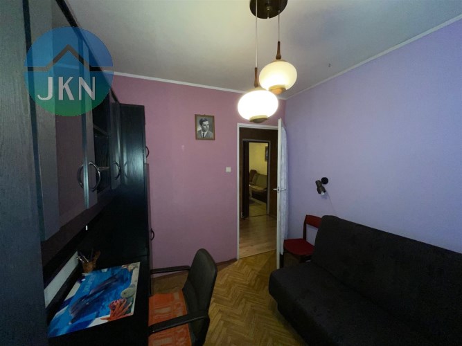 Mieszkanie składa się z: pokoju dziennego o pow. 14,20 m2, dwóch pokoi o pow. 9,3 m2 i 7,6 m2, oddzielnej kuchni z oknem o pow. 6,0 m2, przedpokoju o pow. 5,6 m2 oraz łazienki 2,5 m2 i WC o pow. 1,0 m2.