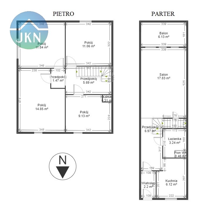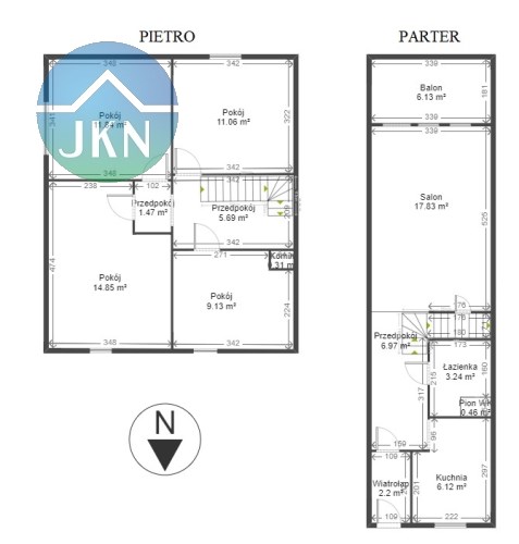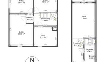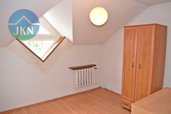 Na pierwszym poziomie znajduje się jasna kuchnia (6,12 m2) , łazienka z nową pralką bosch (3,24 m2), salon (17,83 m2), a także mała komórka gospodarcza usytuowana pod schodami. Na drugim poziomie 4 pokoje, z możliwością zdemontowania jednej ścianki działowej, a nawet zaadaptowania jednego pokoju na drugą łazienkę. Pokoje na piętrze mają powierzchnie kolejno: (14, 85 m2 ; 9,13 m2 ; 11,84 m2 i 11,06 m2). Dodatkową powierzchnię stanowi duży balkon (6,13 m2) oraz przynależna piwnica (ok. 4 m2).