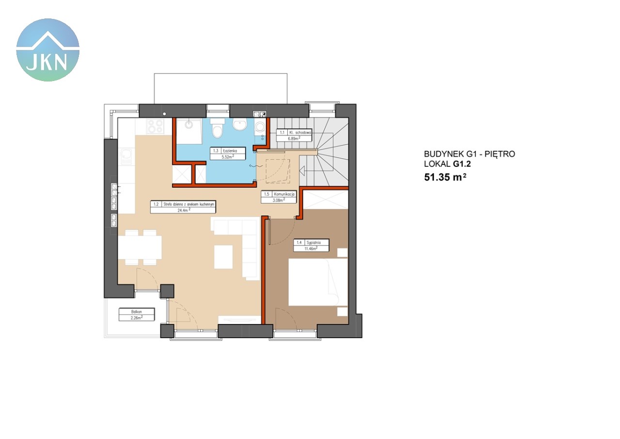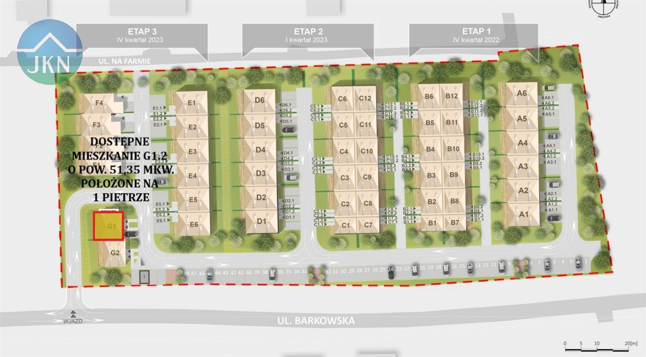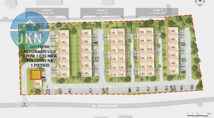 Na sprzedaż 2-pokojowy lokal mieszkalny, położony na 1 piętrze w budynku mieszkalnym jednorodzinnym w zabudowie bliźniaczej - Segment G1 lok. 2 o pow. użytkowej 51,35 mkw.,